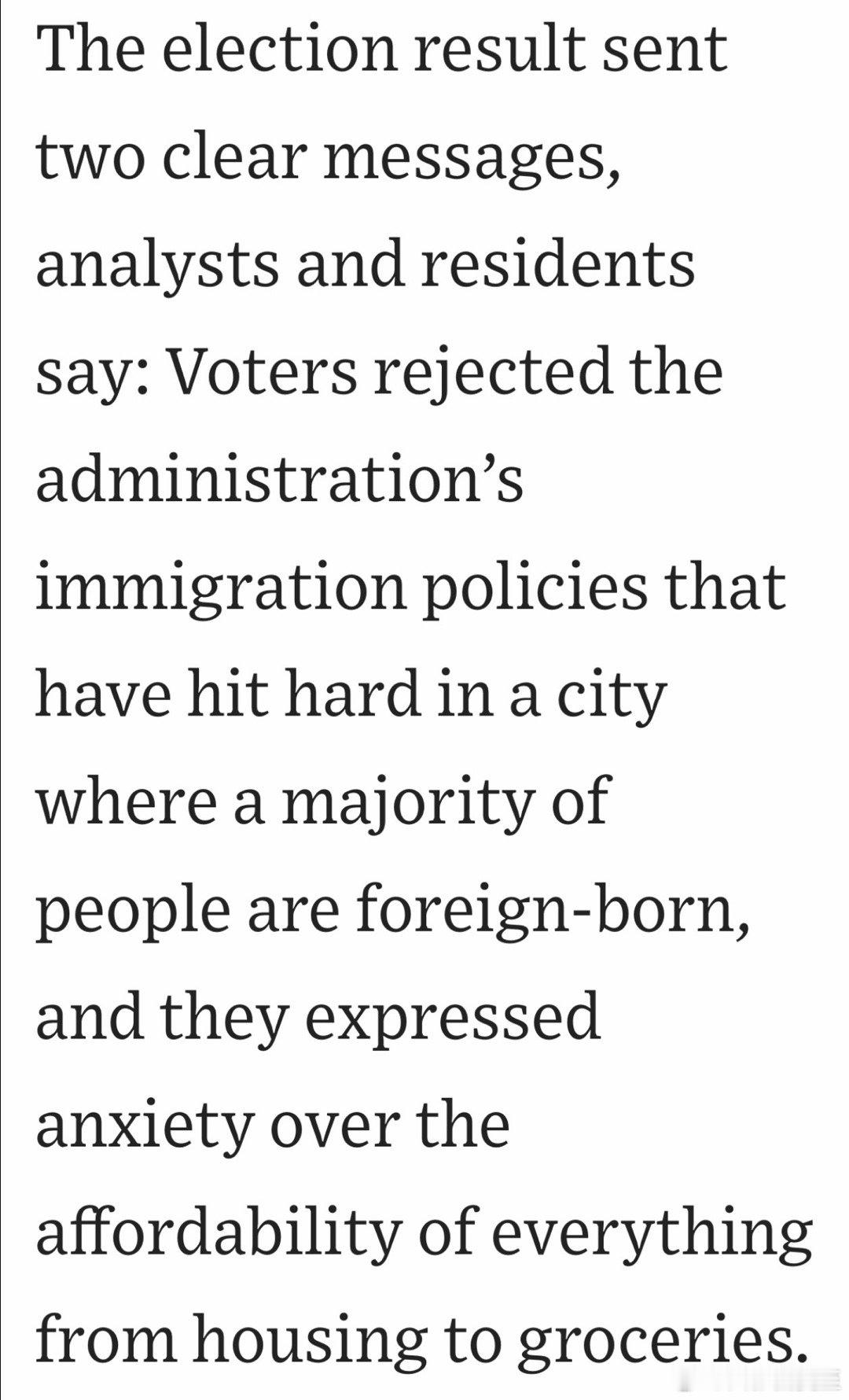 迈阿密市长选举,共和党候选人强调“总统支持”,民主党候选人强调“经济太差”,民主党18个百分点胜出选票传达的信息:对移民政策不满(迈阿密多一半居民是外国出生的移民),对物价太高不满(尤其住房和食物)