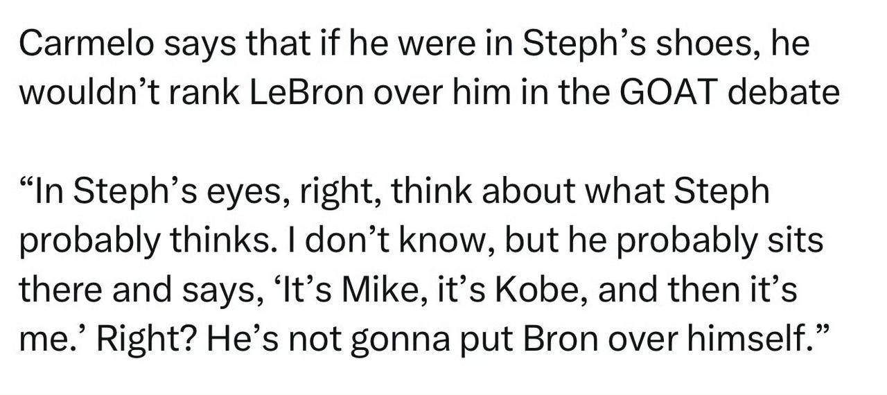 兄弟决裂——安东尼竟说库里goat应排詹姆斯前! 他的排名:乔丹、科比、库里,哈哈。詹蜜们他有资格说不?别问,问就是嫉妒。 确实,都是4个冠军,库里可没主动抱过团,凭啥觉得自己不如詹姆斯? 就因为不会炒作、不会碰瓷吗?