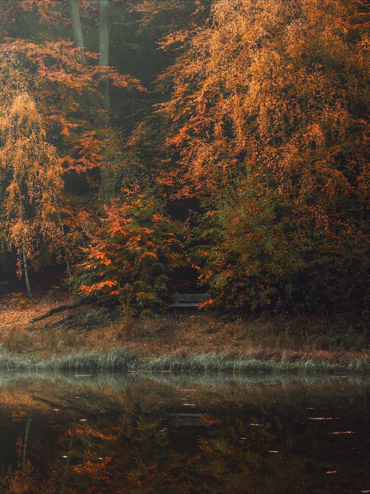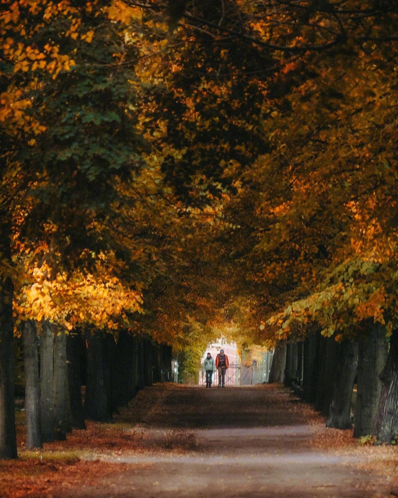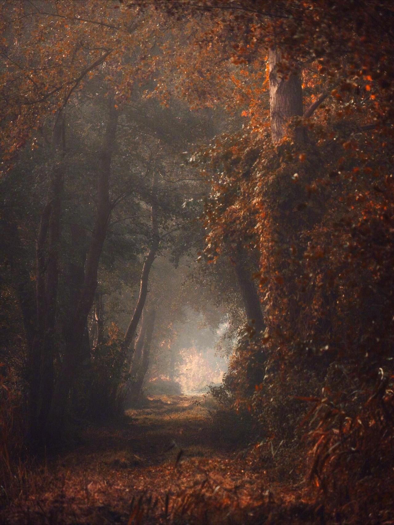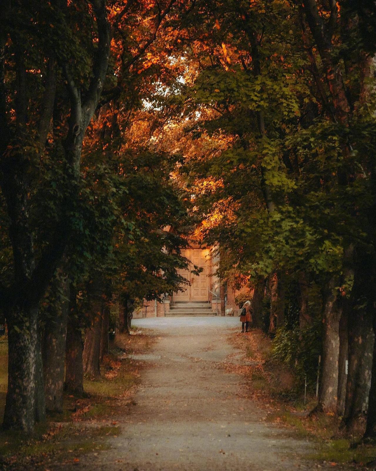 秋日暖阳下,美女漫步在金黄的林间小道,唯美浪漫。