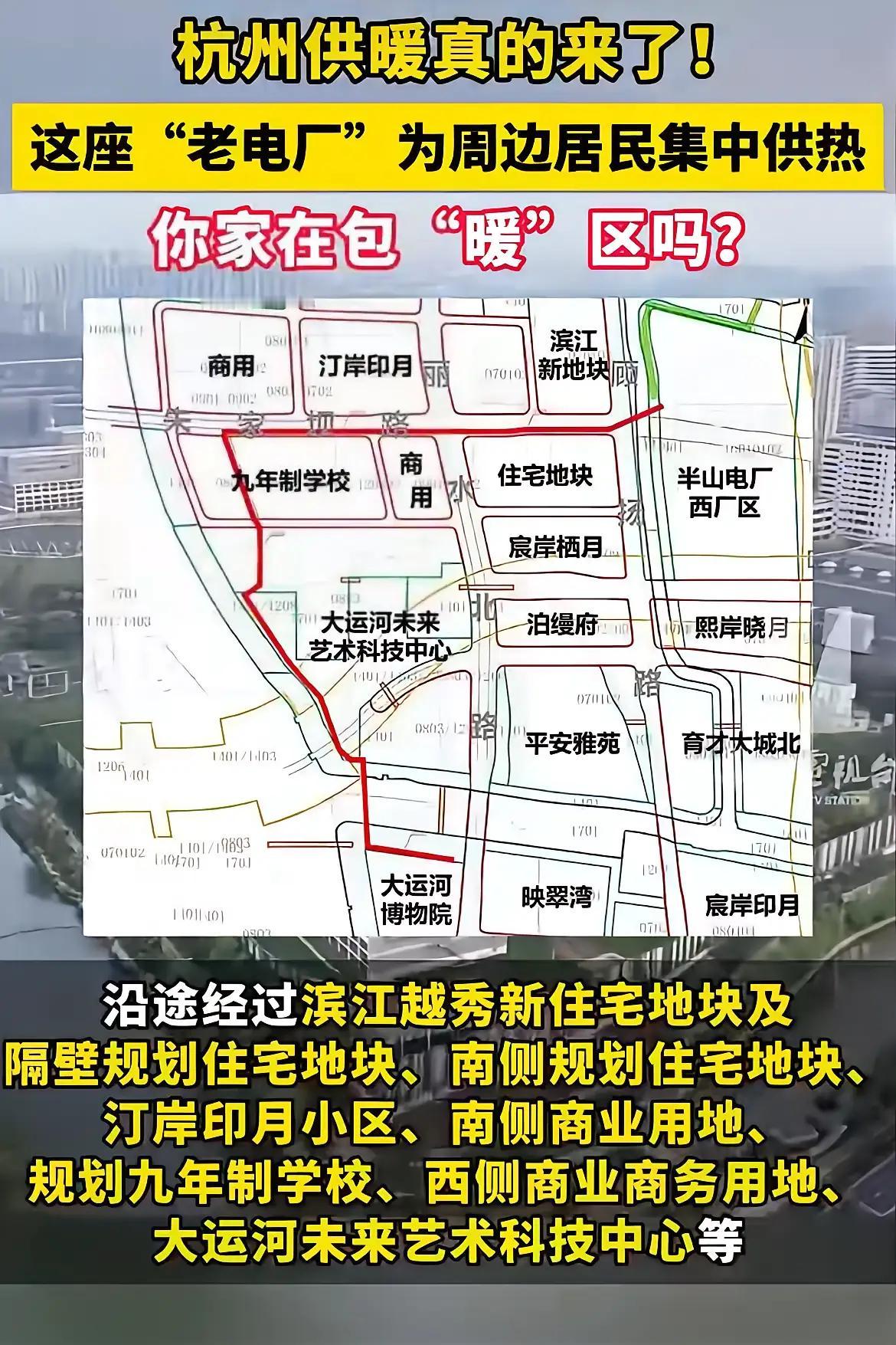 近日,杭州运河新城核心区规划披露,将建设从半山电厂至炼油厂板块的热力管网。 这意味着已完成环保改造的半山电厂,其发电余热有望通过管道为周边区域提供集中供暖,引发市民对“包暖区”的期待。 该项目标志着杭州在利用工业余热进行城市供暖方面迈出实质性一步。 半山电厂运行已超半个世纪,此次改造升级不仅能提升能源综合利用效率,也为杭州冬季供暖提供了新思路。 目前规划覆盖范围主要围绕管网沿线区域,具体受益小区仍有待进一步明确。 南方是否应推行集中供暖一直是社会热议话题。 此次杭州的尝试,不仅关乎部分居民的冬季体验,也为南方城市探索低碳、高效的供暖模式提供了实践参考。 随着项目推进,杭州或将为首个大规模利用电厂余热集中供暖的南方省会城市! 作为南方人,你对集中供暖这事有何看法呢?