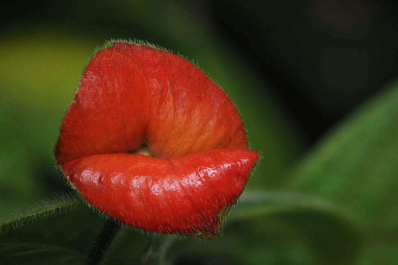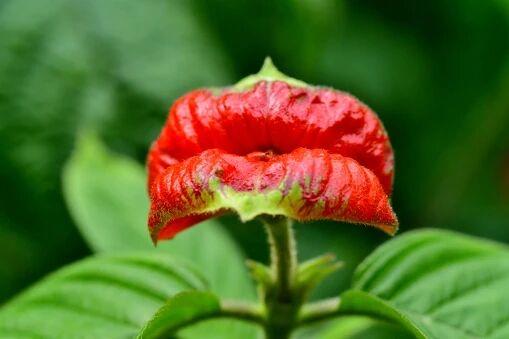 春色朝朝,闲花遍野愁春树。欲寻知故,满地王孙路。堪恨萋萋,一径和烟住。青无数。连天朝暮。寂寞将愁付。——明末清初:程康庄《点绛唇 咏草(壬午)》 当我们漫步公园森林,习惯欣赏玫瑰的娇艳、绿草的茵茵。 然而,在更广阔的植物王国里,生命的形态远比我们想象的更为狂野、精妙,甚至充满诡谲的诗意。 比如有一些花草酷似热烈性感的红唇: 颜色艳红,造型奇特,让人不禁感叹大自然的鬼斧神工。 实际上这个“红色的花瓣类似物”并不是它真正的花,而只是它的花萼。 而里边它真正的花则是白色星状花,也就是说这个“嘴唇”最性感的时候还是它的花苞…… 你见过类似的奇花异草吗?一起分享吧!