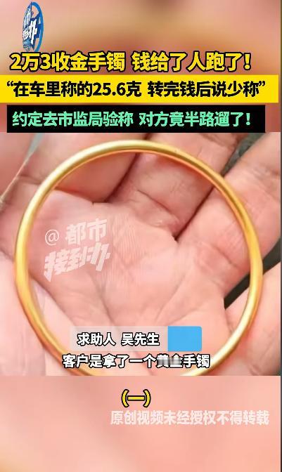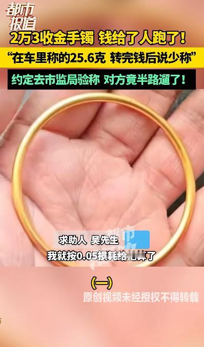 河南洛阳,男子回收一客户的黄金手镯,在车里称重是25.6克,给客户转23650元后,客户突然说想拿黄金手镯给老婆拍个照看。男子没多想,就把金手镯交给客户拍照,没想到,客户直接将金手镯揣兜里对男子说:你这克重有问题。随后,拿走了金手镯,还有那2万多也没退回,男子报警,客户说男子差了自己3克,可接下来客户的做法,让男子犯了难。 这事儿让杨先生(化名)越想越气,现在报警找记者,却还没摸到骗子的踪影,杨先生做黄金回收有些年头了,线上线下都有客源,生意一直顺顺当当,谁能想到,一周前的一笔常规交易,让他栽了大跟头。 那天接到客户电话,说有只黄金手镯要卖,两人约在洛阳一个地点见面,杨先生带着专业称重设备赶了过去,手镯看着普普通通,上手掂量着大概 25 克左右,他仔细称了称,净重二十五克多,按当天金价算下来,报了两万三千多元,客户没异议,杨先生当场付了现金,对方也把金镯递了过来。 可谁料就在钱转过了之后,客户却突然说要发给老婆记录一下,说这个镯子对他老婆来说有特别的意义,所以拍照留念一下,杨先生觉得没什么大不了的,就顺手给递了出去。 可接下来的一幕,让他当场懵了,客户把金镯直接就放进了口袋里面,脸一沉,说这称重有问题,差三克,杨先生赶紧重新检查设备,用砝码校准,反复称了几次,还是 25.6 克,没问题啊。 他跟客户解释,设备没问题,重量也没差,但对方一口咬定自己被骗了,最后更离谱的是,客户直接拿着金镯,揣着那 23650 元,转身就走,留下杨先生愣在原地。 反应过来的杨先生赶紧报警,警方调查时,那客户倒有说辞,声称金镯确实少了 3 克,所以才没退钱,可杨先生这边,设备校准记录都在,交易时的细节也说得明明白白,怎么看都是对方故意找茬。 现在杨先生找了记者求助,就想尽快找到这个人,把自己的金镯和钱要回来。 这事传到网上,网友都炸了,有人说杨先生太实在,交易完成就不该把金镯再还回去,明显是给骗子留了机会,也有人说这就是精心策划的骗局,拍照就是个幌子,目的就是骗金骗钱。 还有做同行的网友支招,黄金回收交易,全程都得录像,钱货两清后绝对不能让物品离手,哪怕客户说破天也不行。 黄金回收本来就是凭诚信做买卖,杨先生按规矩办事,却遭了这样的套路,现在警方还在进一步调查,希望能尽快查到骗子的踪迹。 这事儿也给所有做黄金回收的同行提了个醒,交易时多留个心眼,该有的防范措施不能少,遇到要求不合理的客户,一定要提高警惕,别让不法分子有机可乘。 信息来源 :都市报道