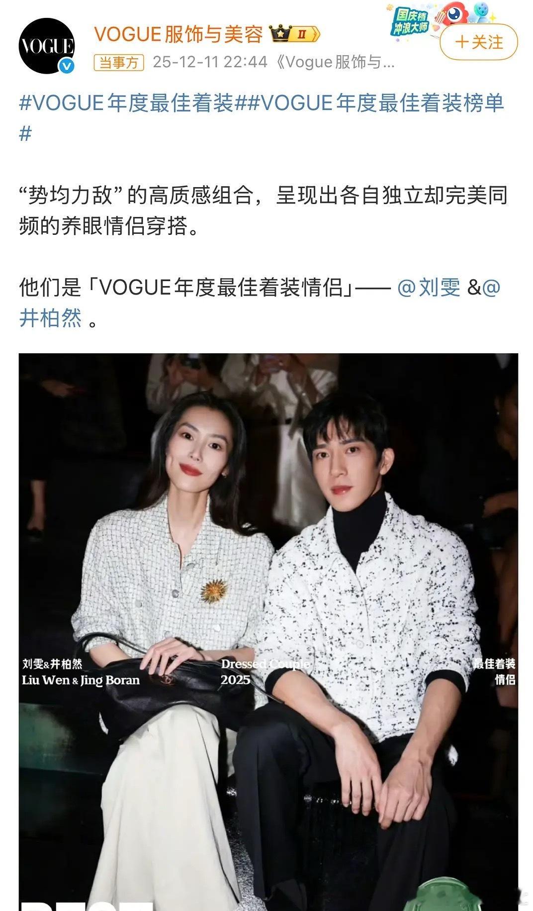 Vogue帮刘雯井柏然官宣