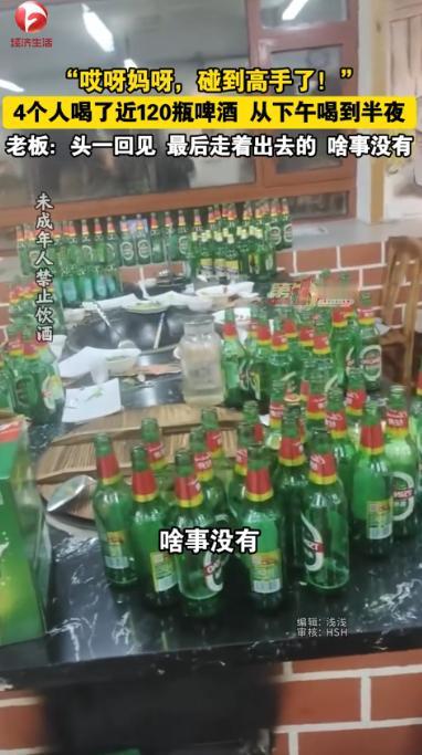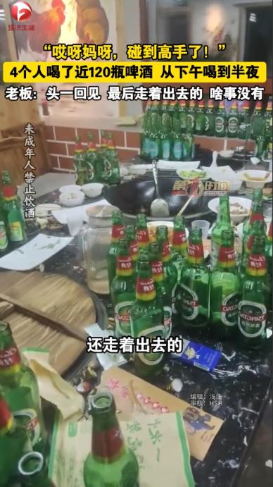“强得可怕!”12月9日,吉林,4名男子在饭店聚餐时,一共要了12箱啤酒,平均每人喝了30瓶,结果喝完后各个都跟没事人一样,悠闲的走出了饭店!老板表示开饭店这么多年,也是要第一次遇到。网友:水里掺酒了?   事情的起因是在前几天的一家饭店里面四名男子走进来,要了个包间,一开口就惊到了店,先来 12 箱啤酒,菜随便配几个下酒的。   店员以为自己听错了,确认了两遍才赶紧备货,一箱啤酒 12 瓶,12 箱就是 144 瓶,这分量别说 4 个人,8 个人喝都得醉倒一半。   刚开始,四人还挺斯文,边吃菜边聊天,酒喝得不算快,可没过多久,酒瓶就开始一瓶接一瓶地空了,四人喝酒的速度越来越快,完全不见停顿。   饭店服务员每隔一会儿就去添酒,看着包间里堆成小山的空酒瓶,心里直犯嘀咕,旁边桌的客人也注意到了这边的动静,时不时探头张望,都觉得不可思议。   不到三个小时,这么多啤酒被喝得底朝天,四人结账时,和正常人一模一样,脸上连点红晕都没有,跟没喝酒一样。   老板特意过来打量了半天,忍不住问了一句,几位酒量可以啊,没事吧,其中一人笑着摆手,没事,喝得挺尽兴,说完四人慢悠悠走出饭店,留下一屋子目瞪口呆的顾客和店员。   老板事后吐槽,整整144 瓶啤酒,平均一人 三十来瓶,换别人早趴桌上了,他们跟喝白开水似的,实在是太佩服了。     这事传到网上,网友直接炸开了锅,有人说,这酒量简直是天赋异禀,普通人喝 5 瓶就晕了,30 瓶不敢想,也有人猜测,会不会是经常喝,练出来的?不然身体根本扛不住。   还有不少网友担心健康问题,喝这么多酒,肝脏肯定受不了,一时爽,长期下来身体得垮,有懂行的网友科普,过量饮酒对肝脏、心脏伤害极大,还可能引发心血管疾病,这种喝法真的不可取。     酒桌文化确实常见,朋友聚会、商务宴请,难免要喝几杯,但喝酒的意义在于助兴,不是拼酒量、比谁更能喝,把喝得多当作 “本事”,其实是在拿健康赌面子。     这四位大哥的酒量确实让人惊叹,但背后的健康风险更值得警惕,身体是自己的,再能喝也得有个度,过量饮酒只会得不偿失。 信息来源 :新浪新闻