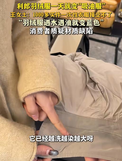 湖南一女子花1143元,给老公买了件羽绒服,结果只穿了一天,应酬时溅了一点水,竟然发现变蓝了,领口出现不明原因的变色。一开始还以为是污渍,洗了这位置之后,它越来越油,女子质疑材质有问题,当她返回门店希望换货时,店家却说:这不属于售后问题,不退不换。 女子坦言:你可以说我老公丑,但你不能说他不讲卫生啊! 女子说,当初挑羽绒服时,店员把面料吹得天花乱坠,说 “耐脏、防水、好打理”,她想着一分钱一分货,1143 块买件品牌款,肯定差不了,当场就付款了。 老公拿到新衣服,第二天就穿去参加客户应酬,饭桌上不小心溅了几滴茶水,当时没太在意,回家一看傻了眼:溅水的地方变成了深蓝色,领口还有一块灰蒙蒙的变色印,看着像沾了油污。 她赶紧端来水盆,用洗衣液搓洗,结果越洗越糟:变色的地方没洗掉,反而变得油光锃亮,那块 “油渍” 还顺着面料扩散,从硬币大小变成了巴掌大。 更离谱的是,衣服贴身穿的地方,只要出汗接触皮肤,就会泛出淡淡的蓝色,把老公的毛衣都染了点颜色。女子吐槽:“正常人谁不出汗、不分泌点油脂?这衣服连基本的耐脏性都没有,穿一天就没法见人,洗了还越洗越脏,跟个‘吸油神器’似的,这哪是羽绒服,分明是一次性抹布!” 她拿着衣服找上门,店家态度特别硬,一口咬定 “不是质量问题”,说 “每个人分泌的油脂不一样,这是洗色导致的,属于正常现象”。 女子反驳:“就算油脂不一样,也不能洗了就染色扩散吧?1000 多块的衣服,连地摊上 50 块的外套都不如,地摊货穿一周洗了都没事!” 后来店里来了个负责人,说可以把衣服寄到品牌总部检测,让女子等着。 《消费者权益保护法》第 24 条,商品存在质量问题或者不符合使用性能,消费者自收到商品之日起七日内有权退货,十五日内可以要求换货。 女子买的羽绒服穿一天就出现变色、吸油、染色等问题,明显不符合中高端服装应有的使用性能,就算店家嘴硬说 “非质量问题”,也得拿出检测报告证明 —— 而检测的责任和费用,依法该由经营者承担,不是让消费者 “等着” 就完事。 合格的羽绒服面料,尤其是中高端价位的,都会经过防污、抗静电处理,至少能应对日常轻微水渍、油渍,不会出现 “一沾就变色、一洗就扩散” 的情况。 女子买的这件,大概率是面料本身有缺陷 —— 可能是染料不合格,遇水遇油就掉色;也可能是面料涂层工艺差,根本不具备基本的耐洗性。这种 “残次品” 能流入市场,要么是品牌品控不到位,要么是店家掺了假货,把劣质货当正品卖。 高价不等于高质,但高价必须有高质兜底。消费者花 1000 多块买的不是 “一次性衣服”,而是信任和体验;店家拒退的不是一件羽绒服,而是自己的口碑和长远生意。 你们对此事怎么看? 女子买千元羽绒服穿1天变吸油服