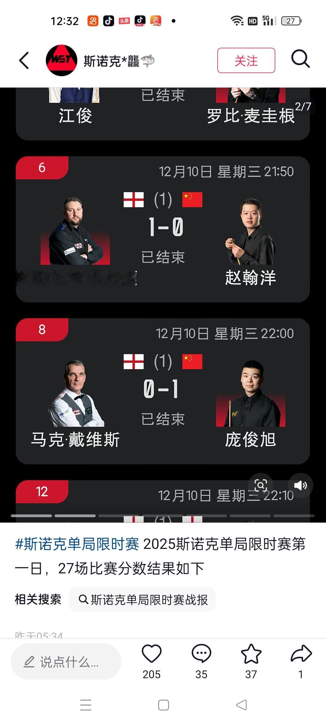 单局限时赛第二轮签表已经确定啦!中国“熊猫军团”有12位选手成功晋级,接下来的比