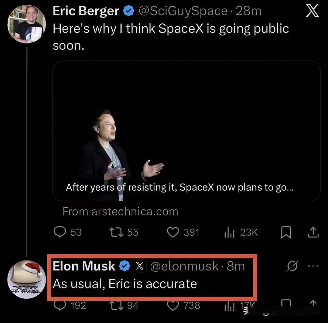马斯克身价将破万亿!SpaceX上市引爆资本狂欢,普通人如何不被时代抛弃?真相藏在这三个残酷逻辑里! 当全球媒体还在争论经济衰退风险时,埃隆·马斯克已经悄然接近一个前所未有的里程碑——成为人类历史上首位万亿美元富豪。这不仅仅是财富数字的跳跃,更是一场关于未来、资本与人性的疯狂实验。 最近马斯克亲自确认,SpaceX将在2026年上市。这家公司目前估值已喊到1.5万亿美元,而马斯克持有近一半股份。加上他手中的特斯拉股票和人工智能公司xAI的资产,万亿身价几乎触手可及。 这意味着什么?一个人的财富将超越瑞士全年GDP,足以买下整个越南的上市公司。这种财富浓度在十年前还只存在于科幻小说,如今却正在成为现实。 资本为何如此疯狂?答案藏在“故事估值法”里。SpaceX去年营收仅150亿美元,不到沙特阿美的零头,估值却堪比后者。因为马斯克卖的不是火箭,而是人类移民火星的梦想。 特斯拉同样如此。它用不到丰田十分之一的销量,撑起过所有传统车企总和的市值。投资者买的不是汽车,而是能源革命的船票。这种逻辑正在重塑商业规则。 更可怕的是马斯克的生态闭环。特斯拉赚钱养SpaceX,火箭发射为特斯拉打广告,X平台免费宣传所有业务。每个故事相互赋能,形成无法撼动的叙事矩阵。 当普通人还在纠结房贷利率时,超级富豪已经用资本投票下一个百年。资源正加速流向那些讲述人类命运的故事,哪怕这些故事今天看起来像空中楼阁。 这种财富爆炸背后是残酷的马太效应。全球前十大富豪的资产在过去三年翻倍,而中等收入群体的实际工资却在缩水。资本盛宴的请柬并非人人可得。 但抱怨毫无意义。这个时代的游戏规则已经改变:你的价值不再取决于努力程度,而取决于你是否站在正确的叙事里。选错赛道,努力可能只会加深困境。 普通人该如何应对?首先必须清醒认识到,跟风炒作马斯克概念股大概率成为韭菜。历史数据显示,90%的散户在热门IPO一年后亏损。真正的机会不在追逐泡沫,而在理解泡沫背后的逻辑。 其次要培养“叙事敏感性”。人工智能、太空经济、生命科学——这些大故事正在重新分配财富。即使不能成为主角,也要努力成为这些领域里的关键节点。 最后记住,万亿富豪的出现不是终点,而是警钟。它宣告世界进入赢家通吃的新阶段,要么学会在新规则下生存,要么被时代无情抛下。你的选择,从看懂这篇文章开始。 马斯克 身价将破万亿 SpaceX上市 资本狂潮 财富密码 资本新逻辑