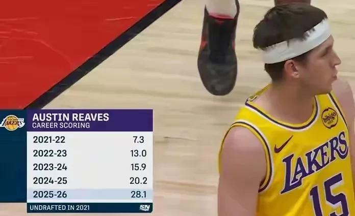 从落选秀到场均28.1分,还在进化中! 一个落选秀目前能场均28.1分很多人都会感到惊讶吧,没错他就是湖人队的里弗斯! 21-22赛季,场均7.3分3.2篮板1.8助攻。 22-23赛季,场均13分3篮板3.4助攻。 23-24赛季,场均15.9分4.3篮板5.5助攻。 24-25赛季,场均20.2分4.5篮板5.8助攻。 25-26赛季至今场均27.8分5.6篮板6.7助攻。 里弗斯目前薪资是1394w刀,如果按照这个表现下一个合同应该也得上4000w刀以上了。 真的不敢相信这是一个落选秀能做到的事!目前队内里弗斯得分仅次于东契奇队内第二!