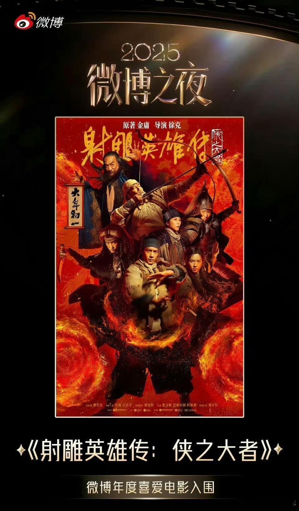 肖战《得闲谨制》、《射雕英雄传侠之大者》入围2025“微博网友年度喜爱电影”