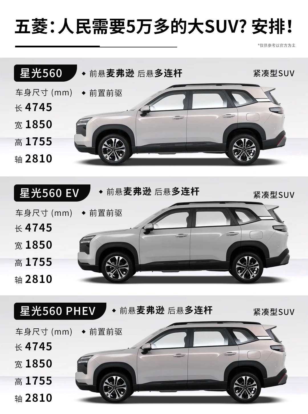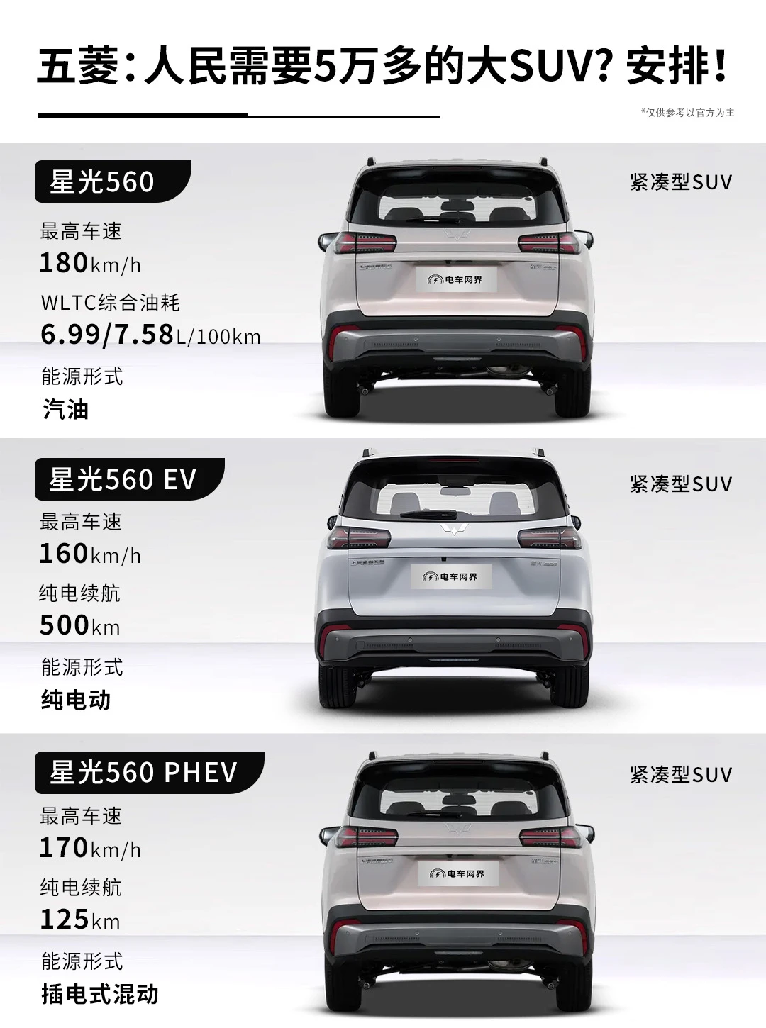 五菱星光560上市了,和星光730一个路子,燃油车,插混,纯电都有,不过这样的产