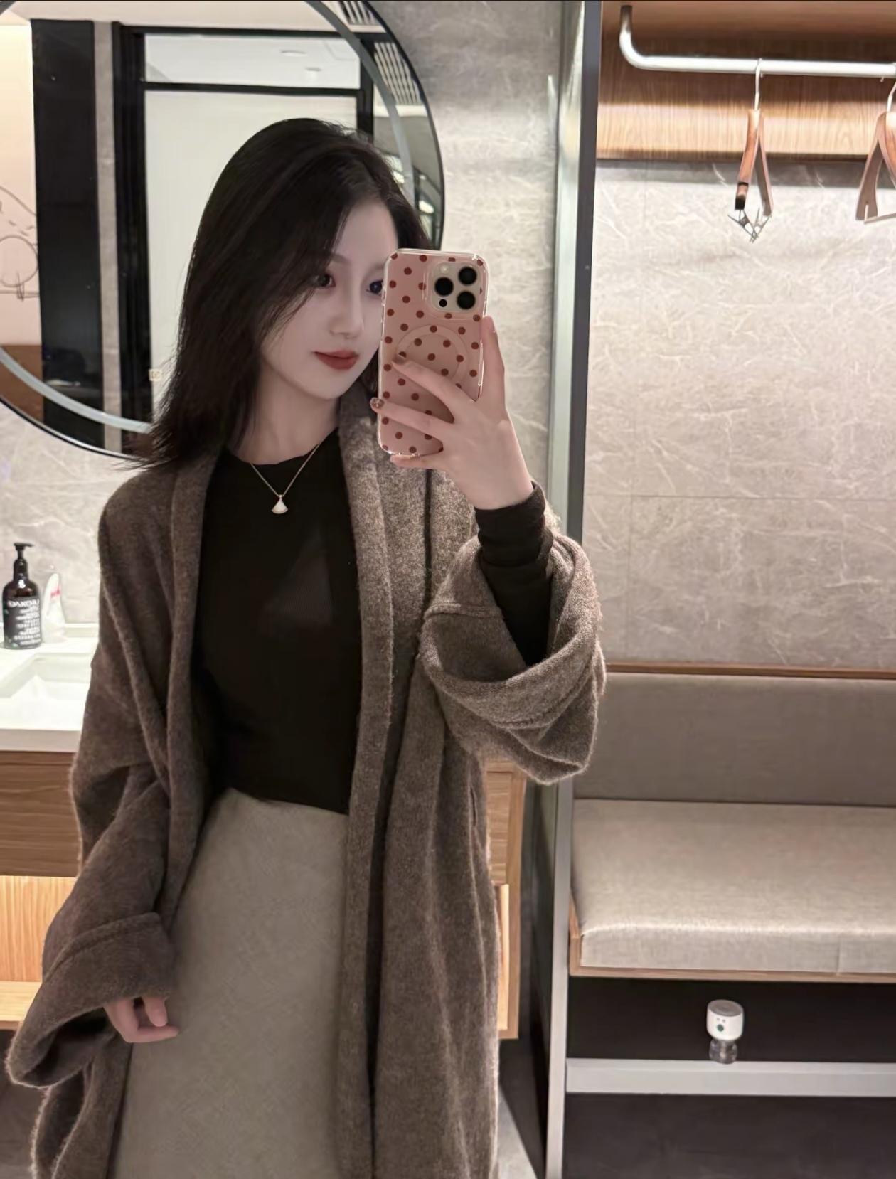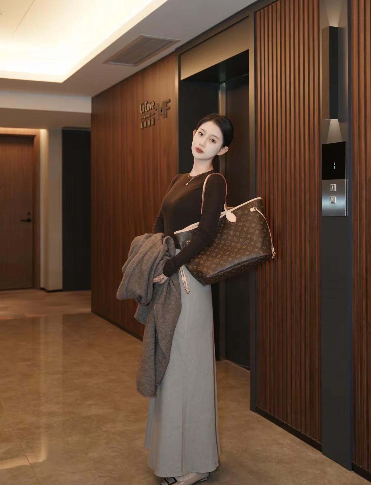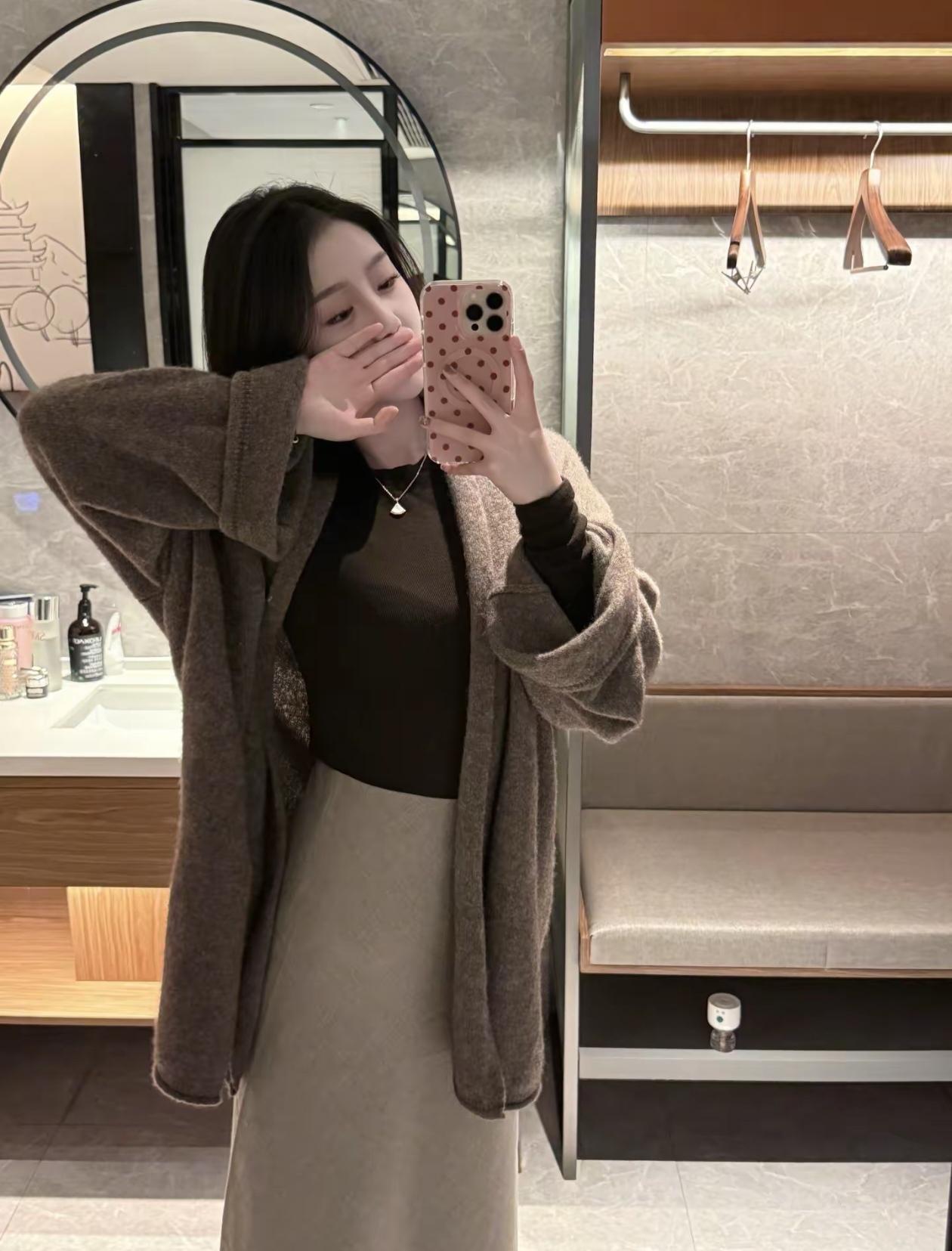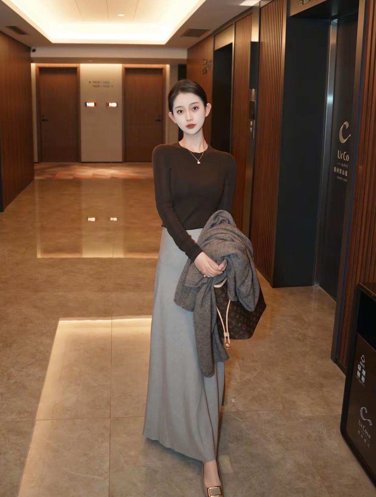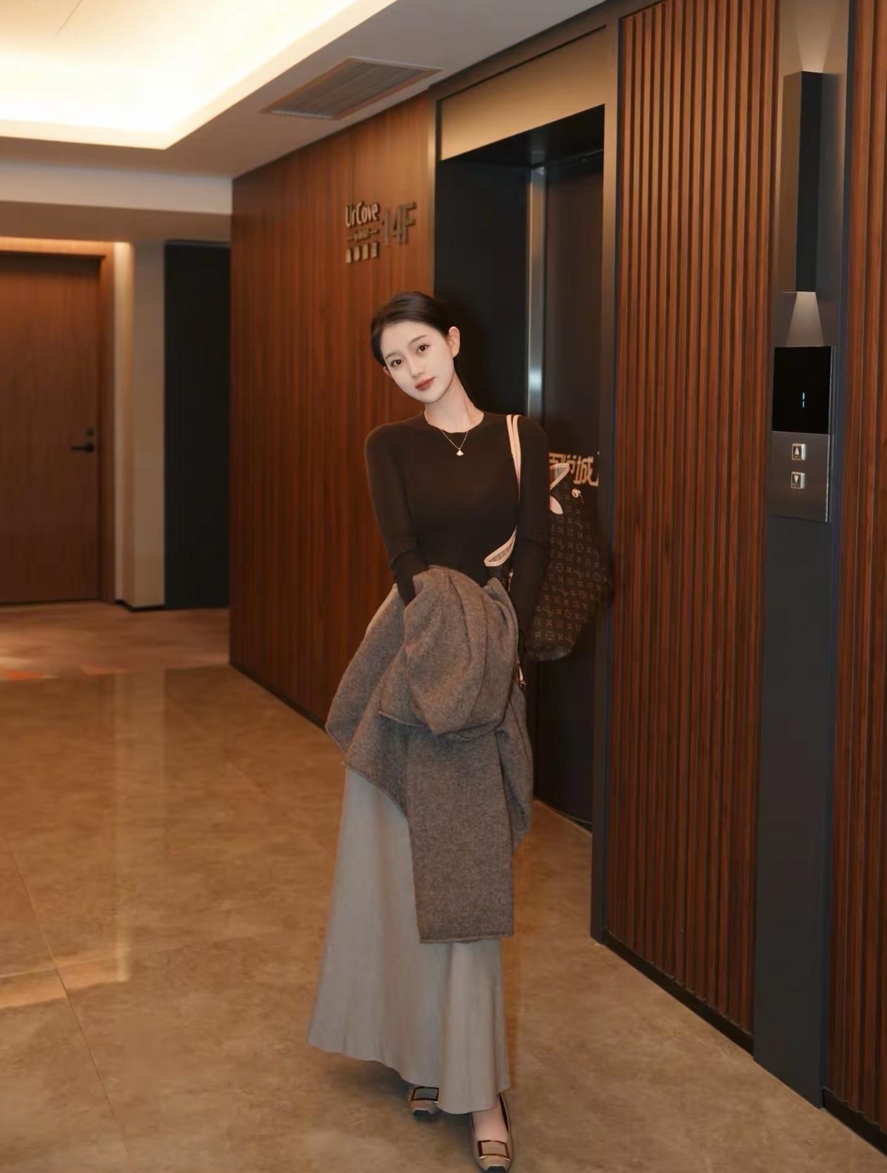 大衣如何搭配才好看,有时尚感?优雅穿搭指南:灰色毛衣+棕色长裙,秋冬必备!