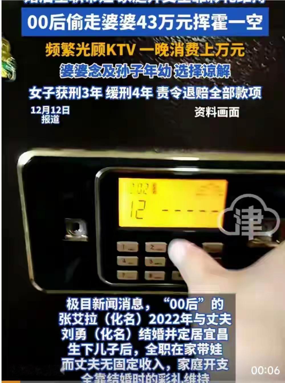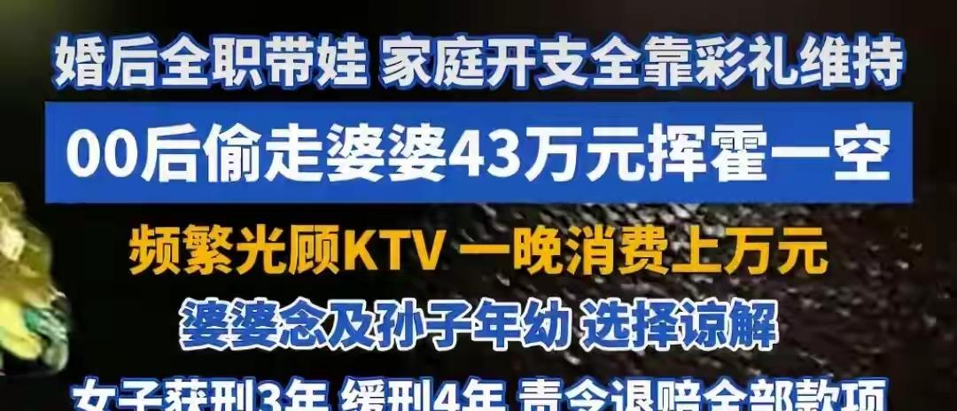 湖北宜昌00后儿媳撬开婆婆保险柜狂偷43万,KTV一夜豪掷万元买醉,背后是家庭窒息还是自我迷失? 当保险柜的锁芯被悄然替换,一个家庭积攒半生的血汗钱在四十多天内化为KTV包厢里的酒水与喧嚣。湖北宜昌这起案件,撕开的远不止是一桩盗窃案的表皮,更是一幅当代年轻妈妈在婚姻围城与育儿困境中挣扎撕裂的残酷画卷。 每月三千元的生活费,一个没有固定收入的丈夫,一个嗷嗷待哺的孩子。这就是张艾拉婚后生活的全部底色。她曾恳求丈夫担起责任,也曾渴望婆婆能伸手搭一把,但生活的重担依旧沉沉压在她一人肩上。那笔彩礼钱如沙漏般流逝,最终见底。 于是,那个卧室里的保险柜,从守护家庭财富的堡垒,变成了她眼中唯一的逃生出口。第一次撬开它时,颤抖的手拿走的不仅是两万多元现金,或许还有她内心最后一丝对规矩的敬畏。从此,潘多拉魔盒被打开。 霓虹闪烁的KTV成了她的临时避难所。在震耳的音乐和恭维声中,那个在奶粉尿布中焦头烂额的年轻母亲消失了,取而代之的是一掷千金的“女王”。一晚消费上万,一周光顾四五次,她用金钱疯狂购买着现实中稀缺的关注与存在感。 心理学上将这称为“报复性消费”,是一种对长期情感压抑和需求匮乏的病态补偿。她在家庭中得不到的认同与价值,在迷离的灯光和虚假的恭维里被短暂地填满。可这填满,如同泡沫,一触即破。 四十三万元,可能是婆婆省吃俭用多年的积蓄,也可能是这个家庭应对未来的底气。但在张艾拉手里,它们变成了迅速蒸发的水汽,平均每日近万元的挥霍速度,令人瞠目结舌。这不仅是财富的消失,更是信任的彻底崩塌。 然而,故事的结局并非简单的罪与罚。婆婆在愤怒与绝望后,在儿子和亲家的哀求中,最终看向了懵懂的孙儿。那一纸谅解书,重若千钧,压下了雷霆之怒,也系住了摇摇欲坠的亲情纽带。法院的缓刑判决,在法理之中糅合了人情。 我们谴责盗窃的无耻,叹息挥霍的荒唐,但也无法全然忽视那背后令人窒息的困境。它像一面镜子,照见了一些年轻女性在步入婚姻生育后,所面临的经济依附、情感孤岛与自我价值的迷失。丈夫的缺位,支持的缺失,是否也是将人推向悬崖的无形之手? 这场家庭悲剧里,没有绝对的赢家。婆婆损失了半生积蓄,儿媳背上了犯罪记录与巨额债务,而那个年幼的孩子,将在怎样复杂的家庭记忆里成长?金钱的窟窿或许可以慢慢填补,但亲情的裂痕,需要多久才能愈合? 它警示着每一个家庭:经济的保障、情感的流通、成员间责任的分担,远比一个上了锁的保险柜更重要。真正的家庭保险,是爱与担当,是倾听与扶持。当一个人在家庭中找不到温暖和出路,她可能会转身投向一个毁灭性的怀抱,哪怕那里只有虚幻的火焰。 家庭关系情感困境 法律与情理