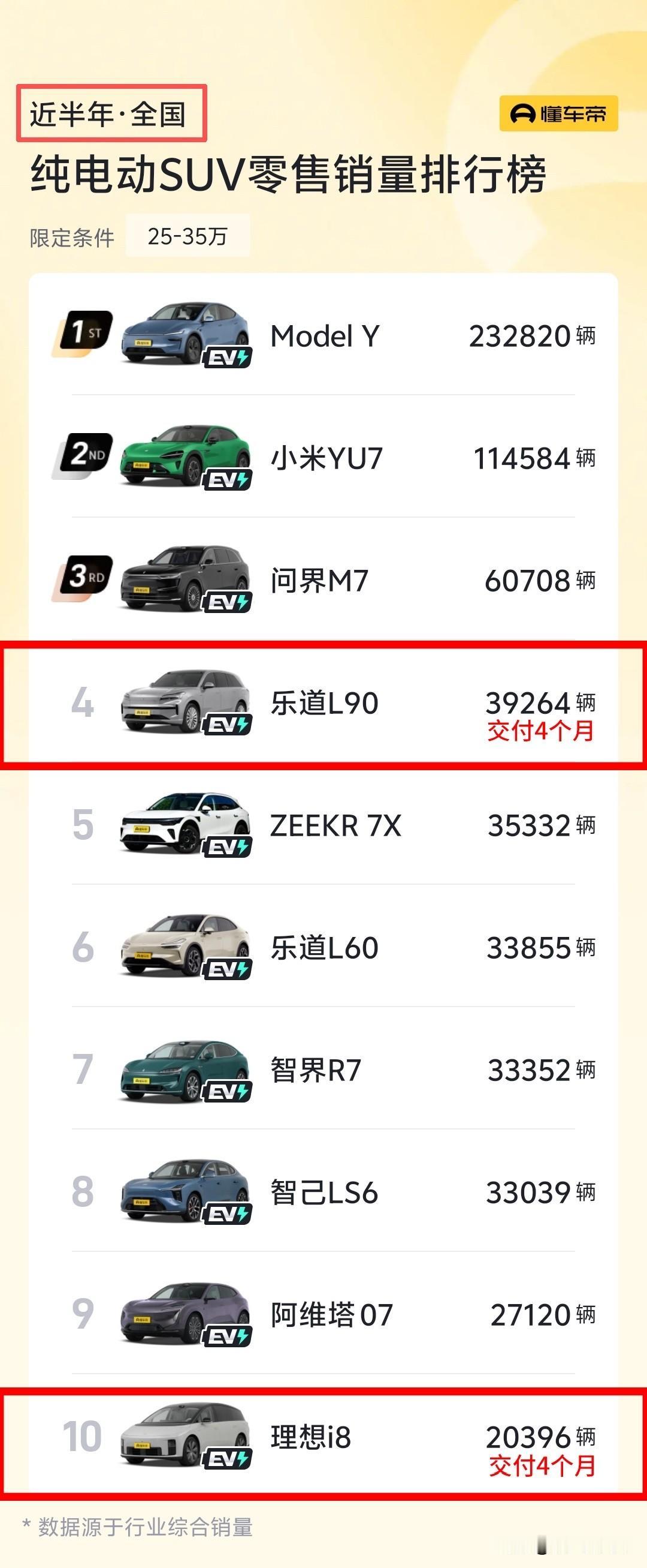 大三排SUV市场今年确实很火! 8-11月四个月总销量看下来,问界M8遥遥领先,而乐道L90也很强,紧随其后位列第二,更以绝对优势拿下纯电大型SUV销量桂冠,成为大三排市场纯电阵营核心标杆。 但随着9、10月份地方购车补贴退坡和年底购置税补贴退坡,车市整体销量开始下行。11月全国乘用车市场零售222.5万辆,同比下降8.1%,创下三年来同期首次下滑纪录,12月首周销量同比降幅更是扩大至32%,经销商库存突破警戒线,市场下行压力空前。 在市场大环境冲击之下,主流品牌纷纷启动“降价救市”模式,而乐道L90的表现可以用“稳健”来形容,在市场波动中始终坚守上市初期价格体系,拒绝“背刺”老客户,以价格稳定性彰显产品硬实力与品牌底气。同时,为应对春运高峰换电需求,乐道L90加码用户体验,投入约6亿元在全国范围内加推8000块全新电池包,以实打实的价值提升替代短期价格战,持续巩固纯电大三排SUV市场领导地位! 对于正在寻找一辆高品质家庭SUV的消费者来说,乐道L90确实提供了一个极具吸引力的“一步到位”的选择!
