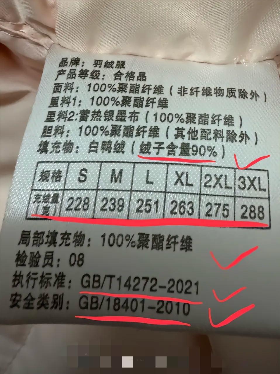 12种绒类区别大揭秘!只有这种才是真羽绒服 只有填充“羽绒”(绒子+绒丝),且符合新国标GB/T14272—2021的,才是真正的羽绒服,羽毛、仿绒等都不算! 一、真绒类(可做羽绒服填充,核心看绒子含量) 1. 羽绒(总称):鸭/鹅腹部绒毛,由绒子(核心保暖部分)和绒丝组成,蓬松度高。 2. 白鸭绒:白鸭腹部绒,颜色洁白,适合浅色衣服,含绒量80%-95%,性价比高,日常穿首选。 3. 灰鸭绒:灰鸭腹部绒,颜色偏灰,适合深色款,保暖性和白鸭绒接近,价格略低。 4. 水洗鸭绒:经过高温清洗杀菌的鸭绒,无异味、更安全,是优质羽绒服常用原料。 5. 白鹅绒:白鹅腹部绒,绒子更长、蓬松度更高(650蓬-900蓬),抗寒力强,价格比鸭绒贵30%+。 6. 灰鹅绒:灰鹅腹部绒,保暖性和白鹅绒几乎无差,颜色不挑面料,高端羽绒服首选。 7. 高山鹅绒:高海拔地区鹅的绒,蓬松度超800蓬,抗寒-40℃以上,顶级羽绒服填充料。 二、假绒/非羽绒类(不算真羽绒服,保暖差还易踩坑) 8. 羽毛:鸭/鹅的硬羽,有羽杆,蓬松度差、易戳穿面料,只能混少量在羽绒里,纯羽毛填充不算羽绒服。 9. 碎绒:羽绒加工废料,绒子含量低、易结块,保暖性大打折扣,属于劣质填充。 10. 飞丝:绒丝断裂后的细小纤维,几乎无蓬松度,锁温差,多用来造假充数。 11. 羽丝绒:化纤纤维仿羽绒,手感软但不抗冻,属于棉服/仿羽绒服,不是真羽绒。 12. 喷胶绒:碎绒+胶水粘合,硬邦邦不透气,易发霉,完全不符合羽绒服标准。羽绒羽绒服鉴别 羽绒辨别知识 羽绒服羽绒造假