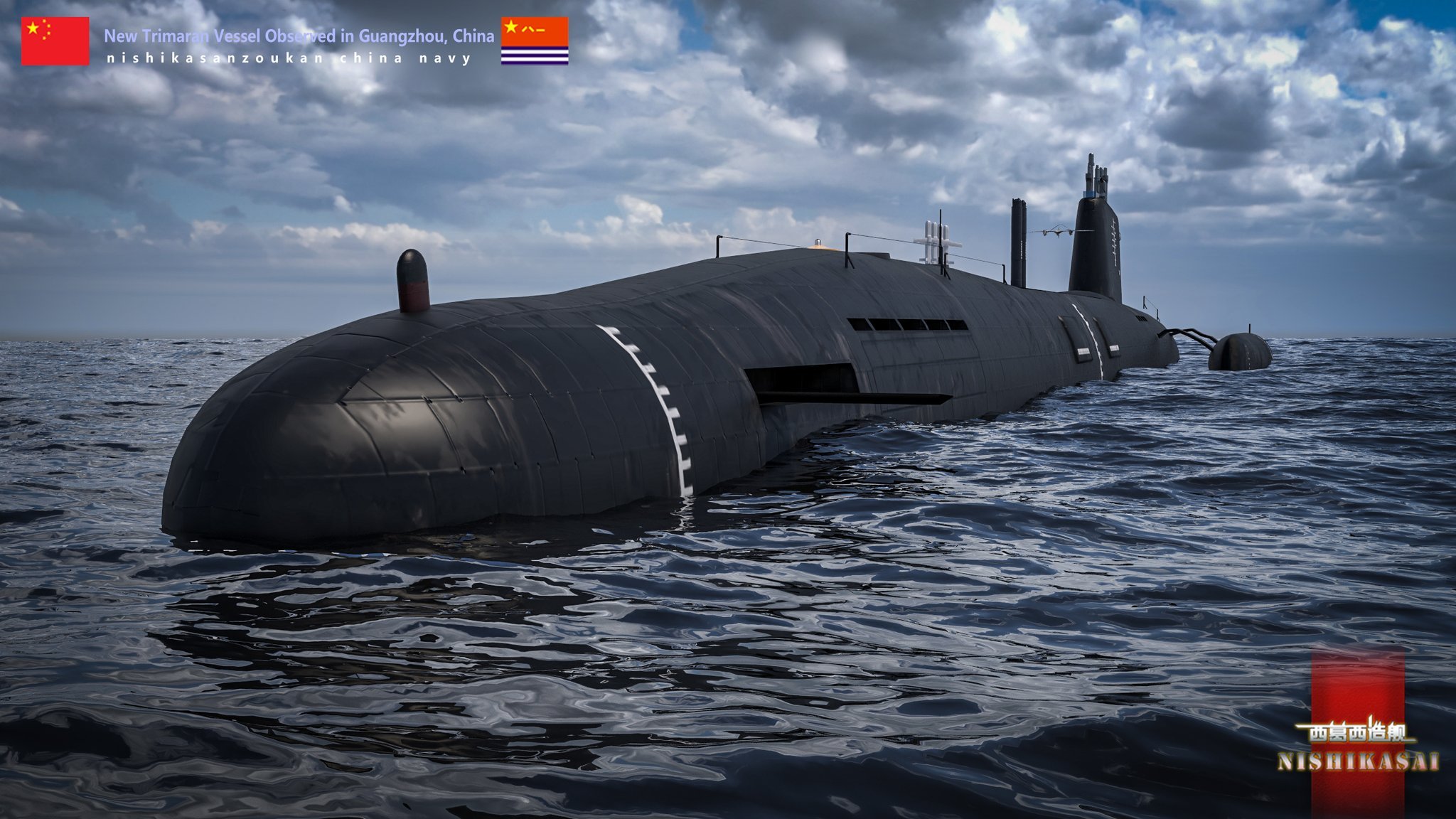 离谱玩意--三体无人半潜船CG图 太邪恶了,真的像科幻动漫和游戏中才有的东西 图中的垂发数量不对,国外GTW的卫星图只数出48坑,位置还要更靠前一点。来自 西葛西烽火问鼎计划