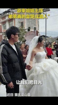 姐姐要出嫁了,弟弟在参加姐姐的婚礼时,面对穿着婚纱的姐姐,面对当时的场面,忍不住大哭起来,看得出来,这个弟弟对姐姐是非常好的,看到这样的画面,不由得想起我姐姐出嫁时的情景,到时我岁数还很小,虽然我没有哭,但是我姐姐哭了,我妈也哭了,弹指一挥间,这都是40多年前的事情了!