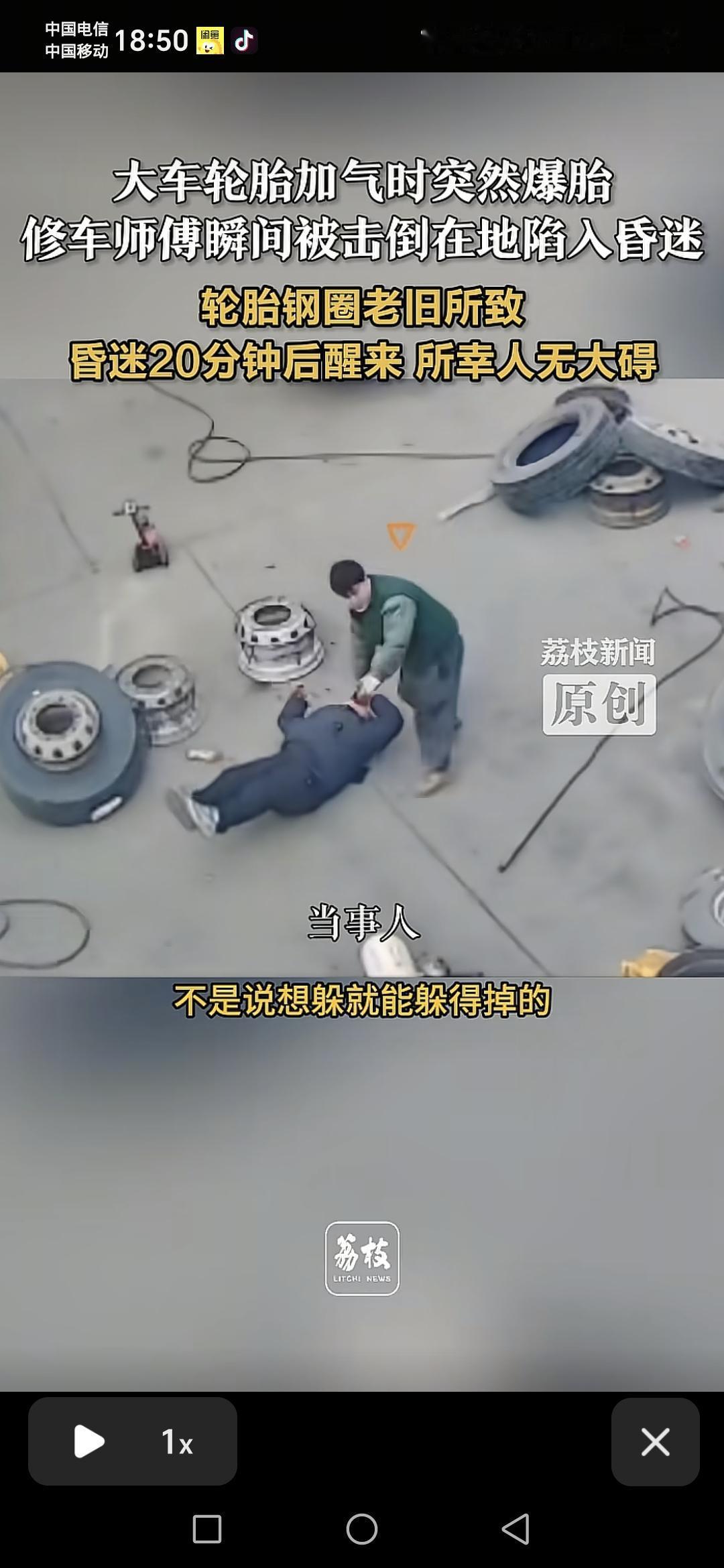 江苏宿迁一位修车师傅给轮胎打气时突然爆炸,人都被炸倒在地上。师傅说轮胎钢圈有问题,而且轮胎老旧的原因,人晕倒在地上之后20分钟醒过来了,幸亏是没什么大问题。修车师傅还表示,本身这一个行业就是属于高危的职业,有时候想躲还躲不了。很多网友都分享了身边修车师傅发生的意外。