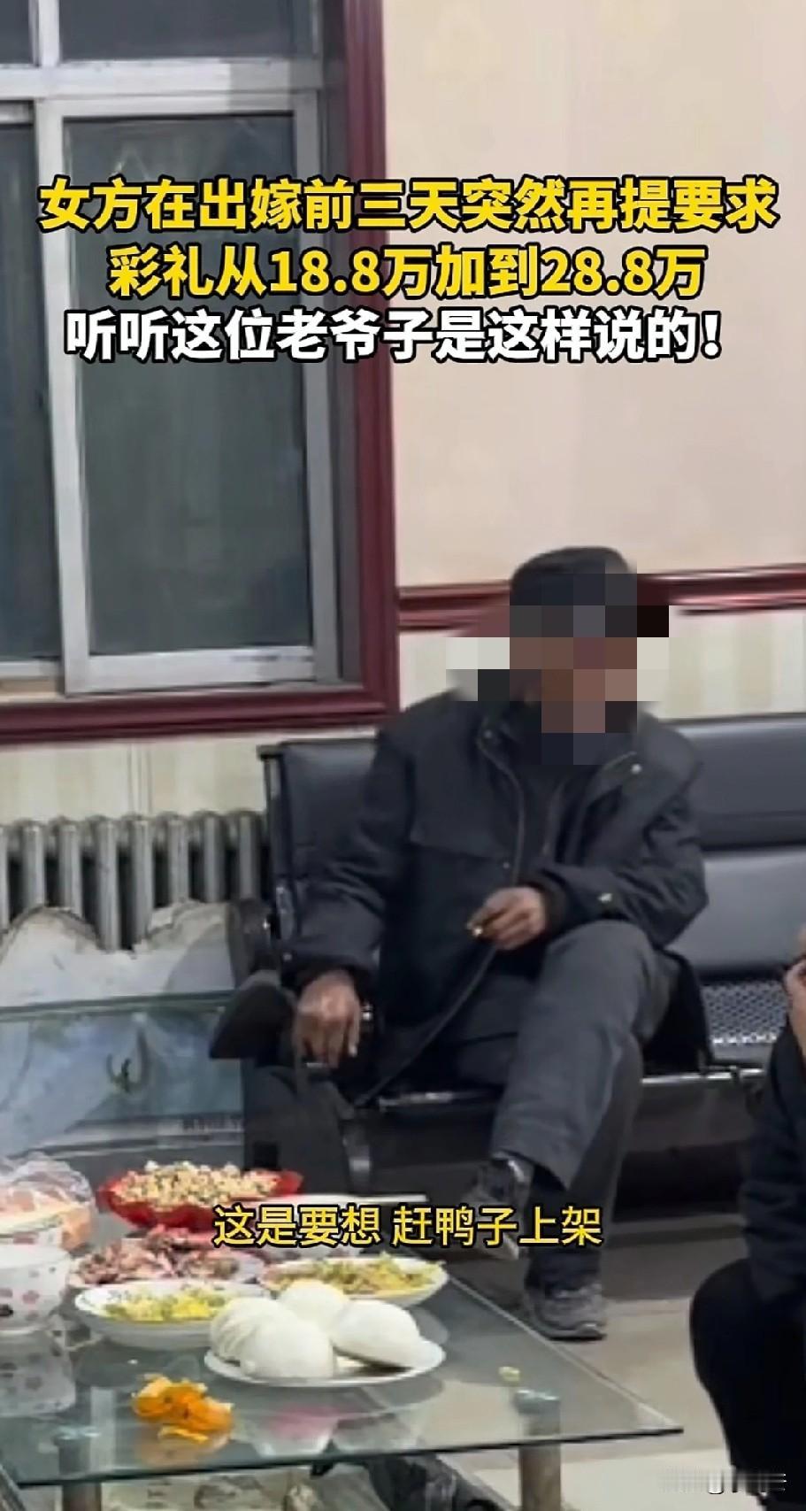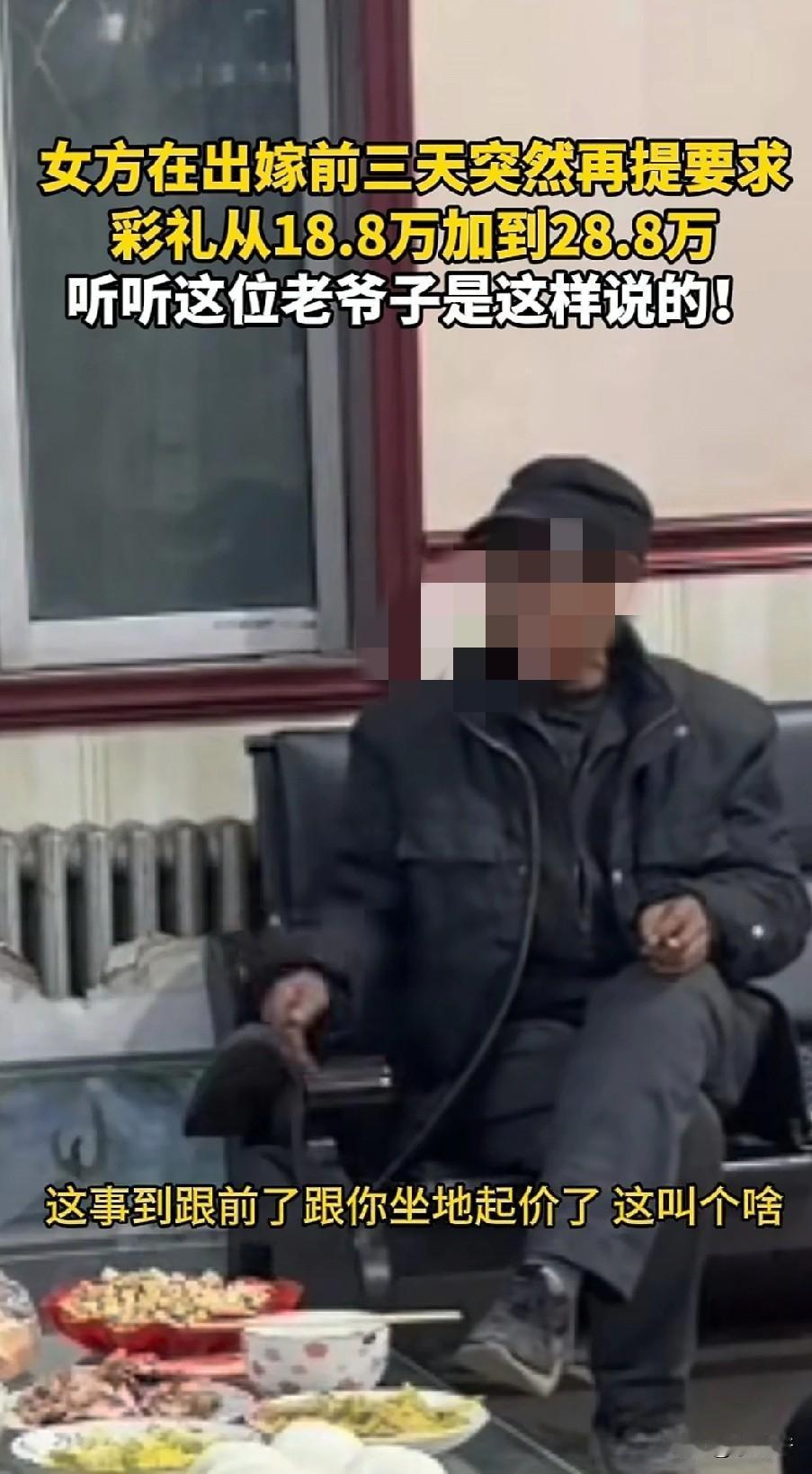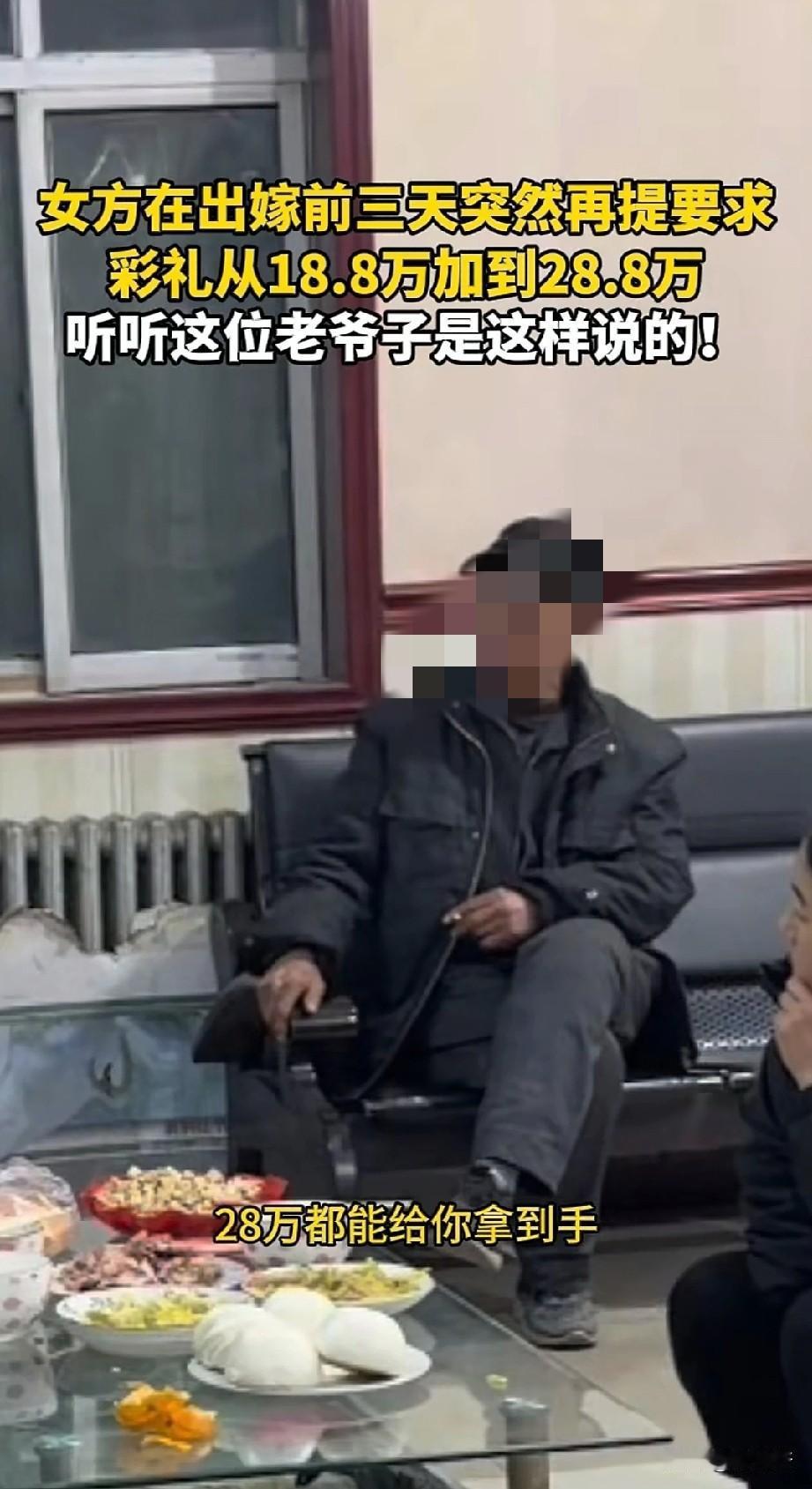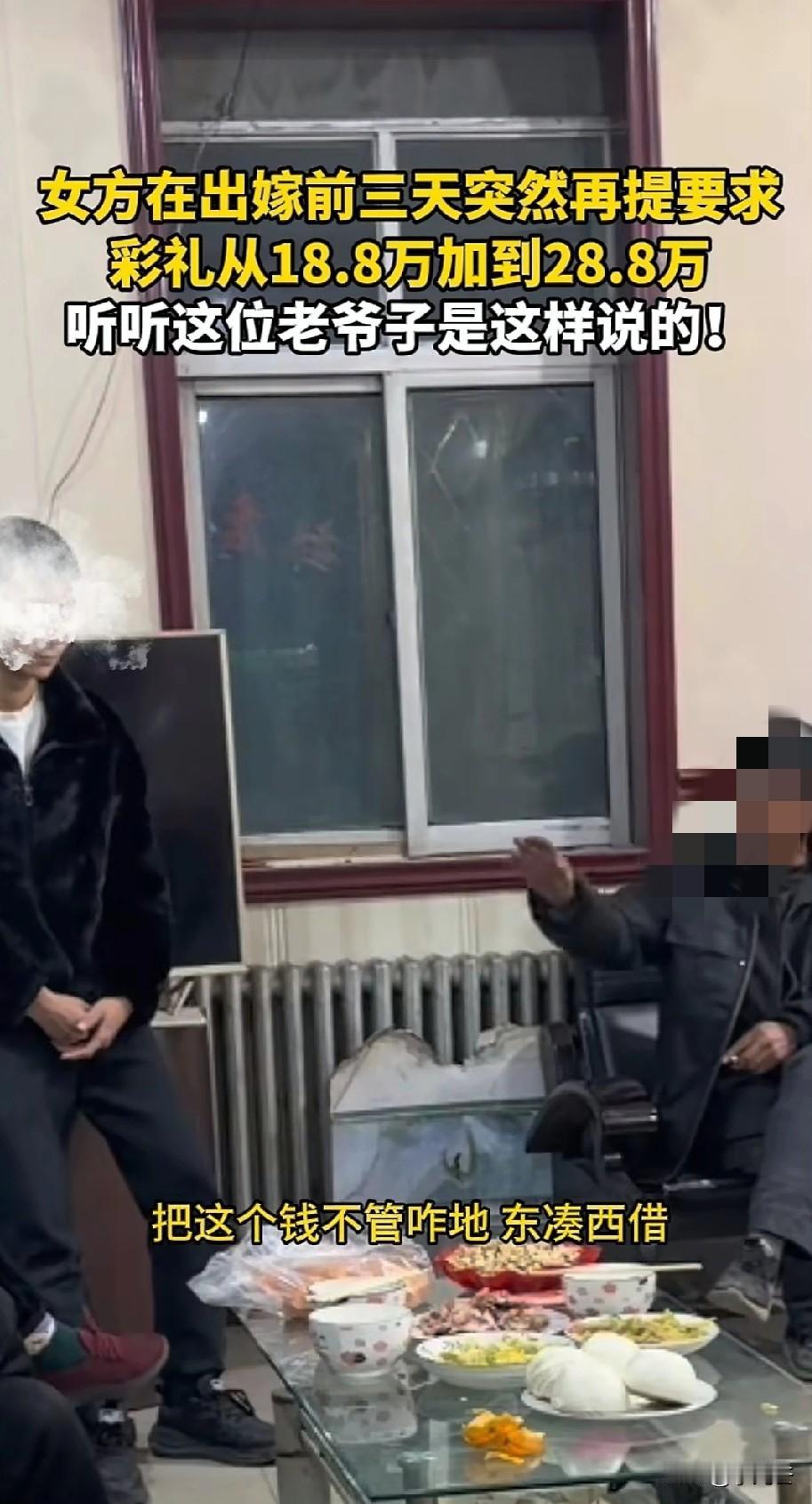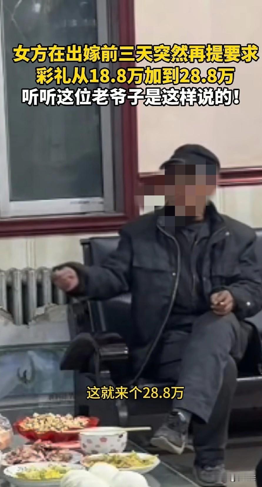 “大爷说的在理!”河北一女子出嫁前三天再变卦,彩礼从12.8到18.8再到28.8万,男方家人火速商议。大爷:汽车、楼房、三金全到位。临近婚期又变卦,钱可以给,但是人品要好好考量,结不结婚要慎重。如果你想结,东拼西凑再给28万。但若不愿意,即便定了婚期,照样给她退回去! 12月12日河北一网友发视频,全家长辈亲友都在商议结婚事宜,男孩显得不知所措,双手握着低着头不说话。 据说女方从一开始的12.8的彩礼,变到18.8现在还不到半年,又变到28.8万,让男方家人无法接受,于是坐在一起商议这笔钱该怎么办。 坐在沙发上的老人,忍不住出来说理。在农村就没有这么过日子的,说好的事情变了三卦,坐地起价太不厚道。钱可以给,但是这个姑娘的人品要好好考虑。 不能因为到了婚期,也通知了亲戚朋友,就赶鸭子上架,她提什么要求都满足,这样即便结了婚,以后的日子该咋过? 女方觉得都到了结婚这日子,又提出这要求。大爷劝小伙子好好想清楚,如果这样还想娶她,东拼西凑也给凑28万,但是如果不愿意,咱不怕丢人,照样给她退回去。 真的如果一开始就要30万,男方觉得彩礼太高不愿意,其实倒也无可厚非。而像这样一步步变卦,说好了又变,一步步挑战人家的底线,太不尊重男方,本来结婚是两家人变成为一家人,这样变卦感觉是在欺负人,还婚还不如不结!
