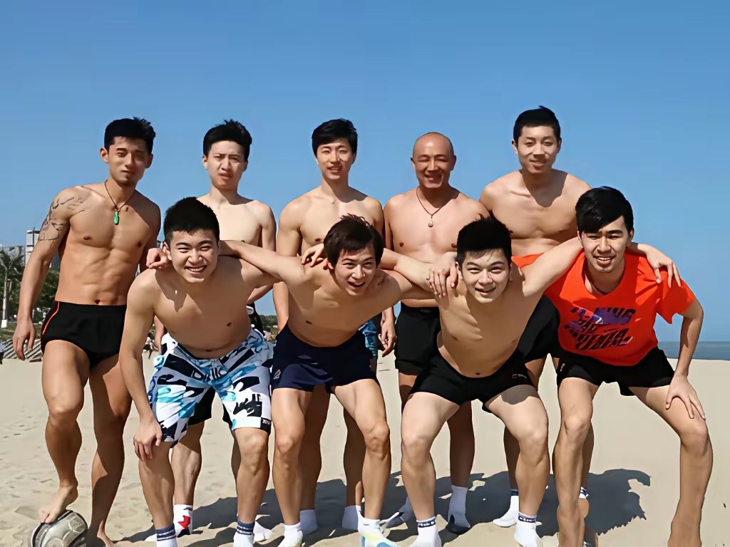 谁懂啊,有点尴尬曾经的老照片,国乒的九个腹肌猛男中我只认识马龙?帮我看看樊振东,王楚钦他们在不在里面啊这九个人里面,是不是随便拎出来一个都是刘国梁说的世界冠军?那时候的大家看着氛围就很好啊,一起秀肌肉,一起踢踢球九个人里面有谁能全部认出来的吗?