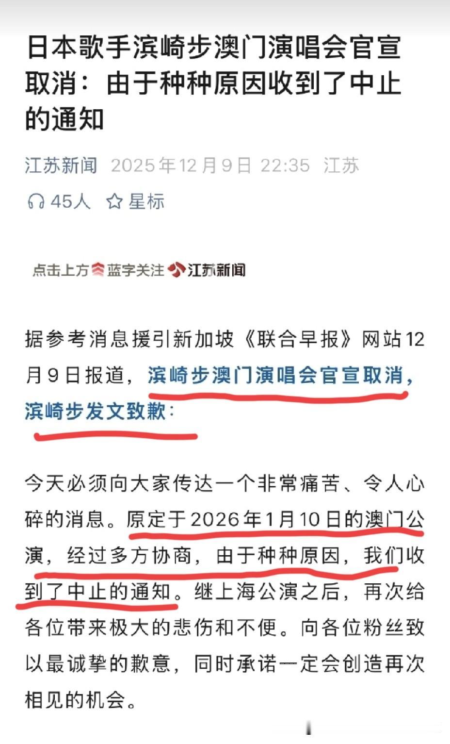 日本歌星滨崎步的澳门演唱会也取消了, 看来短期内滨崎步不太可能在国内开演唱会了, 其实之前上海演唱会取消的事情出来之后, 要是她的团队没有搞那个所谓滨崎步一个人的演出的小作文, 澳门的演出不太会取消, 这属于想耍个小聪明一次结果踢到铁板了。