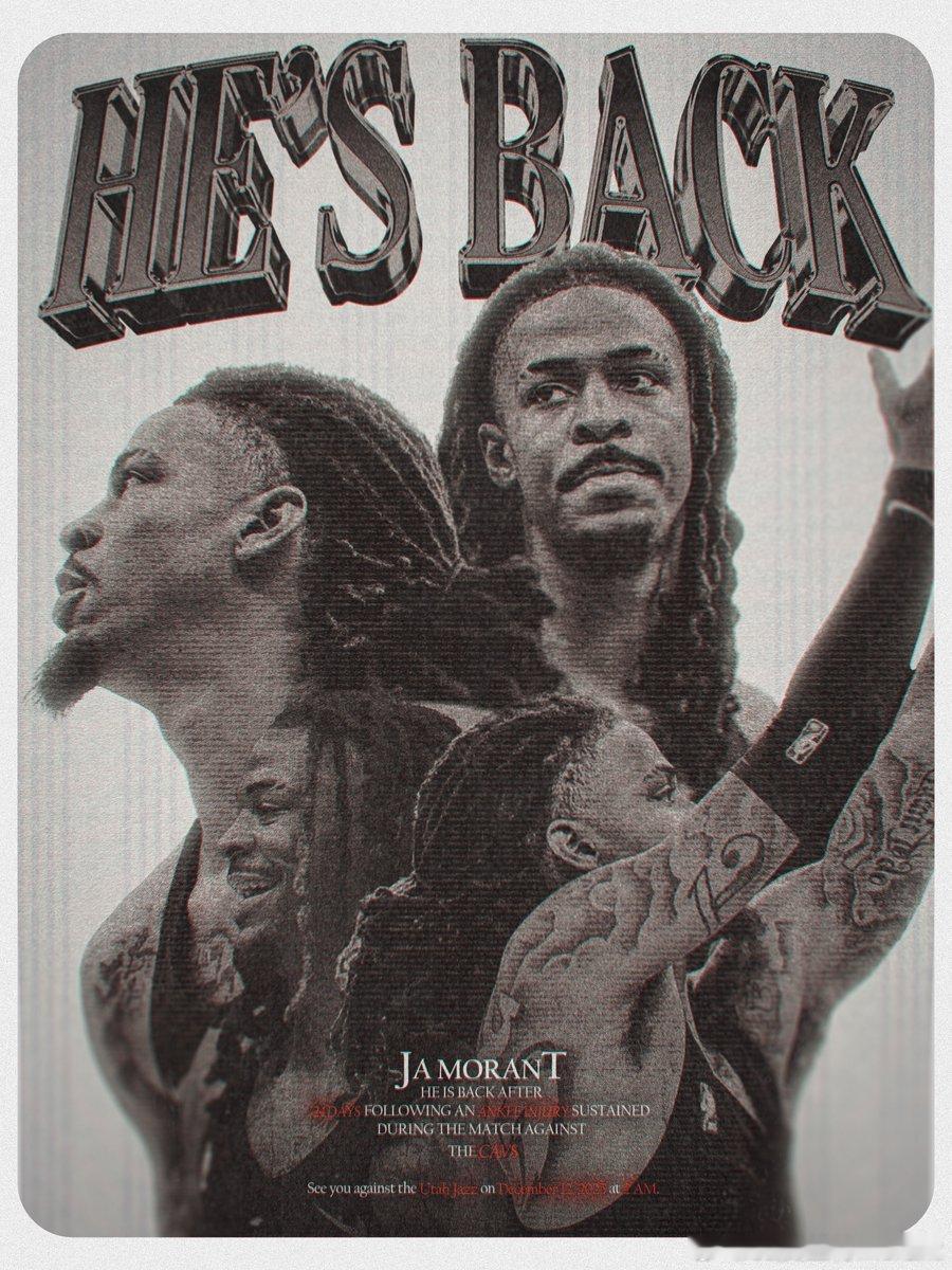 下场比赛,莫兰特暂不能出战,可能要到打开拓者了。
