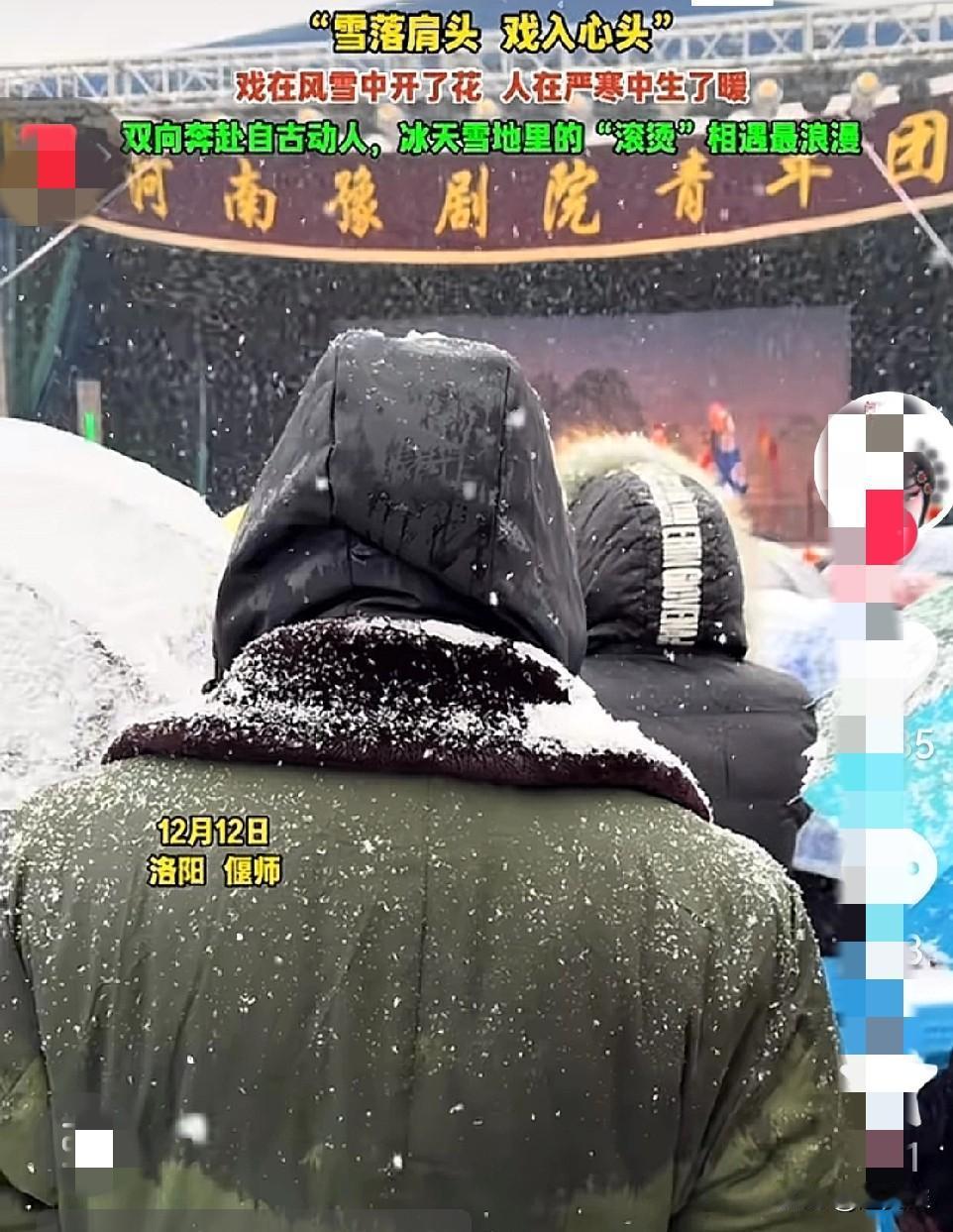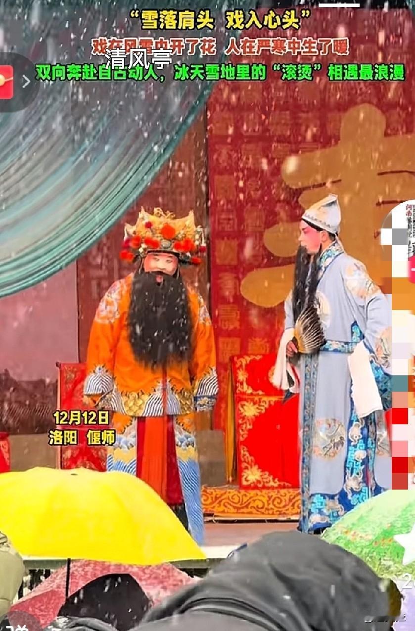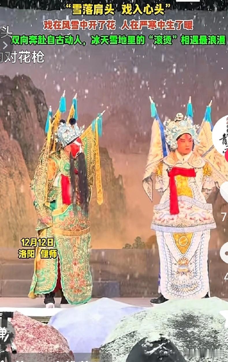 雪落肩头,戏入心头。刷到这条视频,感慨万千。为演职人员的辛苦付出,表达深深敬意,对民众喜爱豫剧的热情,心生爱意。别冻着了。 不过河南人喜欢豫剧带有天生基因,我小时候差点被剧团带走,只是家人不愿意。虽然我不会唱了,我喜欢艺术的根基扎的很深。我不拒绝任何门类的艺术,我觉得人生,没有艺术,如同鳏寡孤独终老,有艺术,人生有滋有味。 就是天太冷了,演员们要开口唱,演奏员要演奏乐器,没法取暖,虽说有戏比天大的话,我还是心疼付出汗水和热血的青年人。我看是河南省豫剧院青年团在风雪中送戏,愿好运常伴,永葆艺术青春!