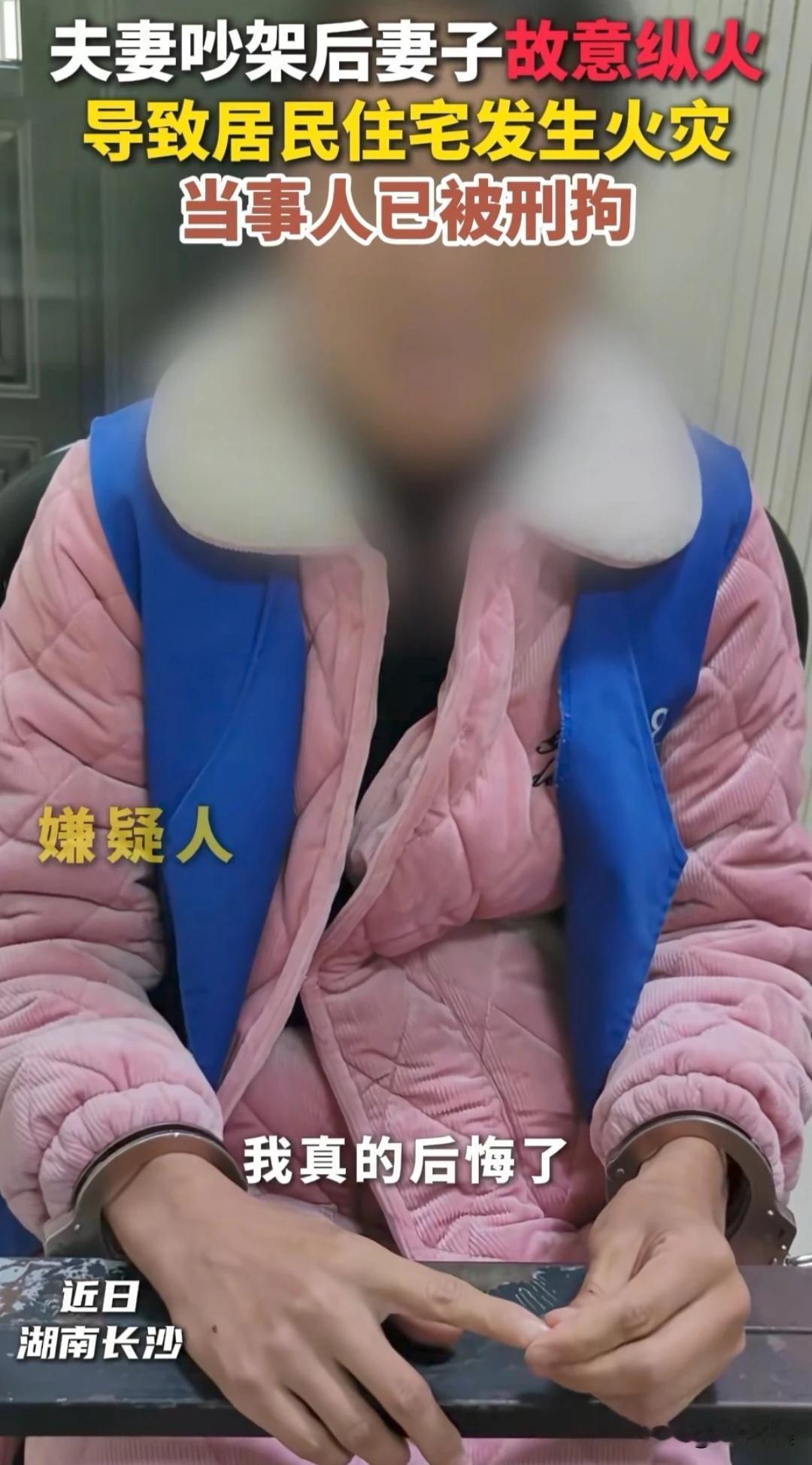 这是又蠢又自私! 长沙一女子因为和老公吵架,为了吓唬、威胁老公,女子点燃了房屋,结果引发了居民住宅火灾,导致消防警力全全出动,居民楼的居民被紧急疏散,女子现已被刑拘! 该女子表示,她为家里付出的太多了,越想越气,因此为了吓唬老公,就在卧室里纵火,但是没想到火势越来越大,已经无法控制,现在她感觉特别后悔! 这女子是又傻又自私,你为了泄愤、威胁恐吓自己的老公,你就纵火,如果你出事了,你老公正好换个老婆,真是太傻了;而且这种行为还极其自私,因为你个人的情绪而纵火,以至于威胁到了整栋楼居民的人身安全和财产安全,这种人自私到了极点,如果她老公不要她,也是对的,这种人情绪太不稳定了,太危险了!