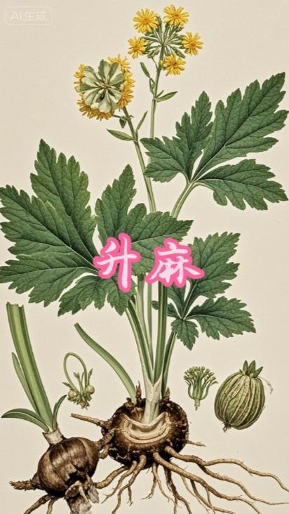中草药十九……【升麻:中医中的“升腾之宝”】 升麻,属于毛茛科植物,是中医药中重要的升发药材。其性微寒,味辛、微甘,具有升阳举陷、清热解毒的功效。升麻常用于治疗阳虚下陷、头晕目眩、面色苍白等症,也能辅助治疗热病初起、疮疡肿毒等症。 在临床中,升麻常与柴胡、黄芩等药物配伍,增强升发阳气、清热解毒的作用。它能升举身体的阳气,改善体虚乏力、精神不振的状态,特别适合因阳虚引起的头晕、耳鸣等症状。此外,升麻还具有解毒散结的作用,用于疮疡肿毒、毒蛇咬伤等。 现代研究发现,升麻中的有效成分具有抗炎、抗菌、抗病毒的作用,能促进身体的自我修复能力。其升阳作用,有助于调节身体的阴阳平衡,改善虚实夹杂的症状。 总之,升麻是一味具有升阳提气、解毒散结的中药瑰宝。合理使用升麻,既能增强身体的阳气,又能清除体内的毒素,是中医治疗中不可或缺的重要药材。正确认识和应用升麻,将为健康保驾护航。升麻