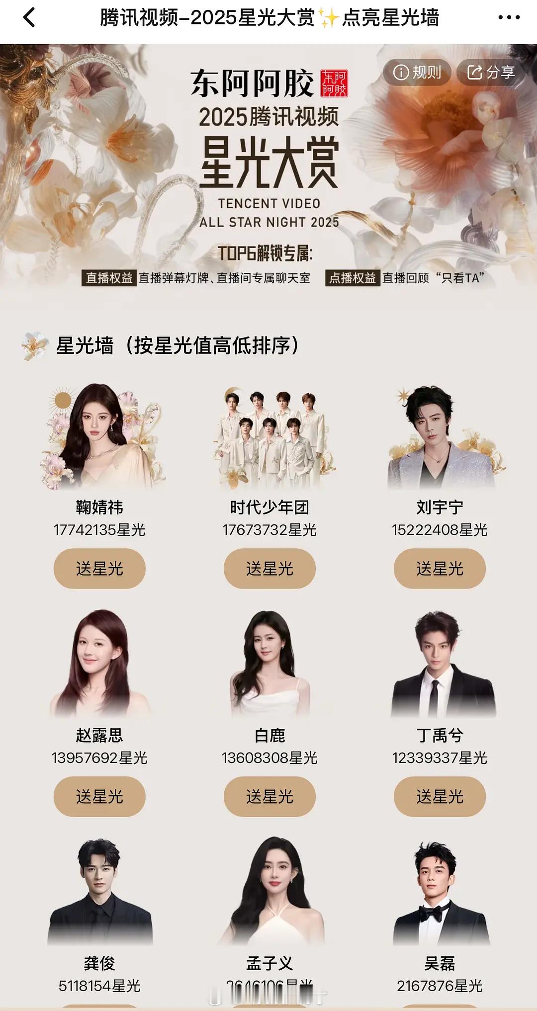 鞠婧祎的星光值已经第一了,时团第二。数据好顶啊。鞠婧祎星光值第二