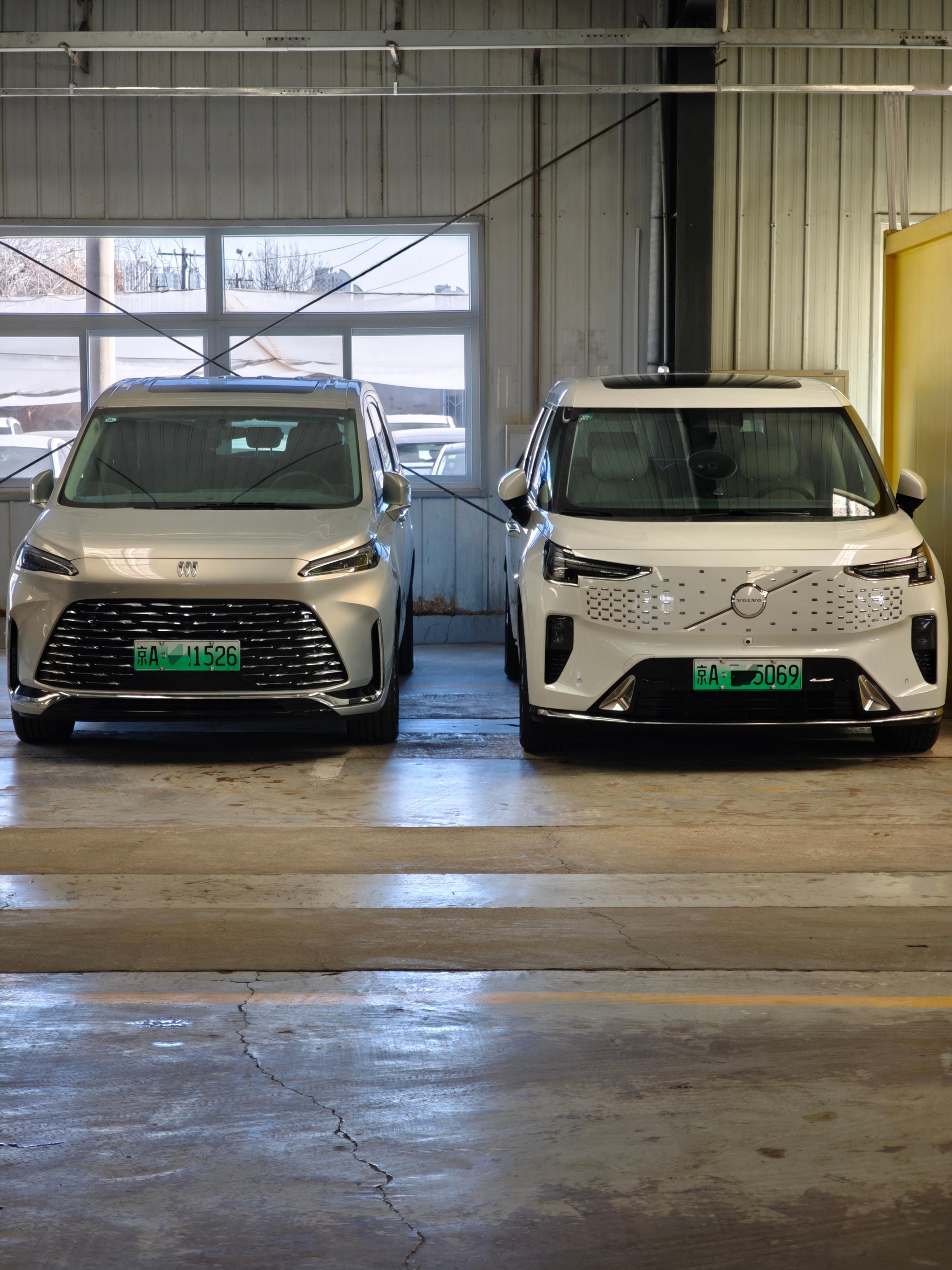 别克GL8陆尚和沃尔沃EM90同框,视觉宽度差距好大当然价格差距也很大,右边能买左边三个