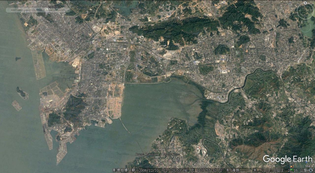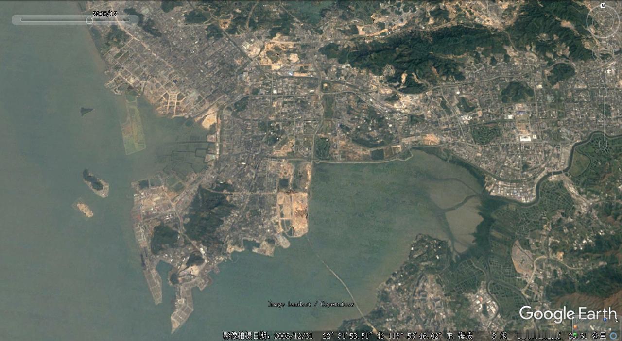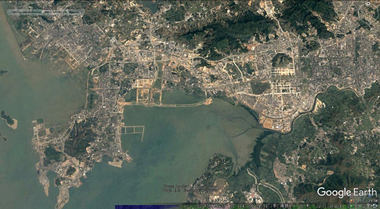 今天发现一个很有纪念意义的图片,在谷歌里看到了从1979到2024的深圳湾发展变化的过程。原来深圳一直以来也填海造地,而且特别是机场,蛇口,前海这一片地区。 大家可以从1979年的图上看到那时还是一片的绿色田地,基本是田地,到了1984年的12月,也就是改革开放5年之后,陆面就发生了大变化,公路,建筑区可以明显的看到了。这5年间NASA没有提供时间点的图像。蛇口码头,赤湾码头还有没有出现。 时间来到1991年12月,可以看到变化更大了,建筑的区域更密集,在福田的京港澳高速正在建造中,路面的轮廓清晰可见。蛇口码头,赤湾码头在建造中。 到了1997年12月,北环大道,深南大道,滨海大道清晰可见了,滨海大道还不能通车。蛇口码头,赤湾码头已经建成,赤湾码头把左边的炮台都包围了。深圳湾在填海中,看到有井字框架已经建成,可以发现现在的深圳湾公园以前是海水区域,也可以说是南山中心路外就是海了,现在倒是在城市内陆了。深圳湾口岸就是在海上造出来的。 来到2004年12月,深圳湾,深圳人才公园可以看到初貌了。福田口岸也完善了很多,同时也可以看到香港那边也有不小的变化,深圳湾公路大桥已经在动工了。 2005年12月深圳湾公路大桥已经很明显了,前海区域有开动的迹象。深圳湾的填海基本上是完成了,与现在相符的基本现形,那时我正大学毕业,来到深圳。可以看到2004年还没有动静的孖岛现大已经有动工的迹象。 2006年12月前海区域完善中,深圳湾已经在打基础一片工地的景象。广深沿江高速还没有出现,孖岛的变化。 2016年12月,前海,蛇口,深圳湾已经成熟。广深沿江高速已经用了多年了吧。 2020年12月,可以看到中央援港应急医院在施工中。 看完这一时间段的变化有没有感慨呢?我的国真是太厉害了。