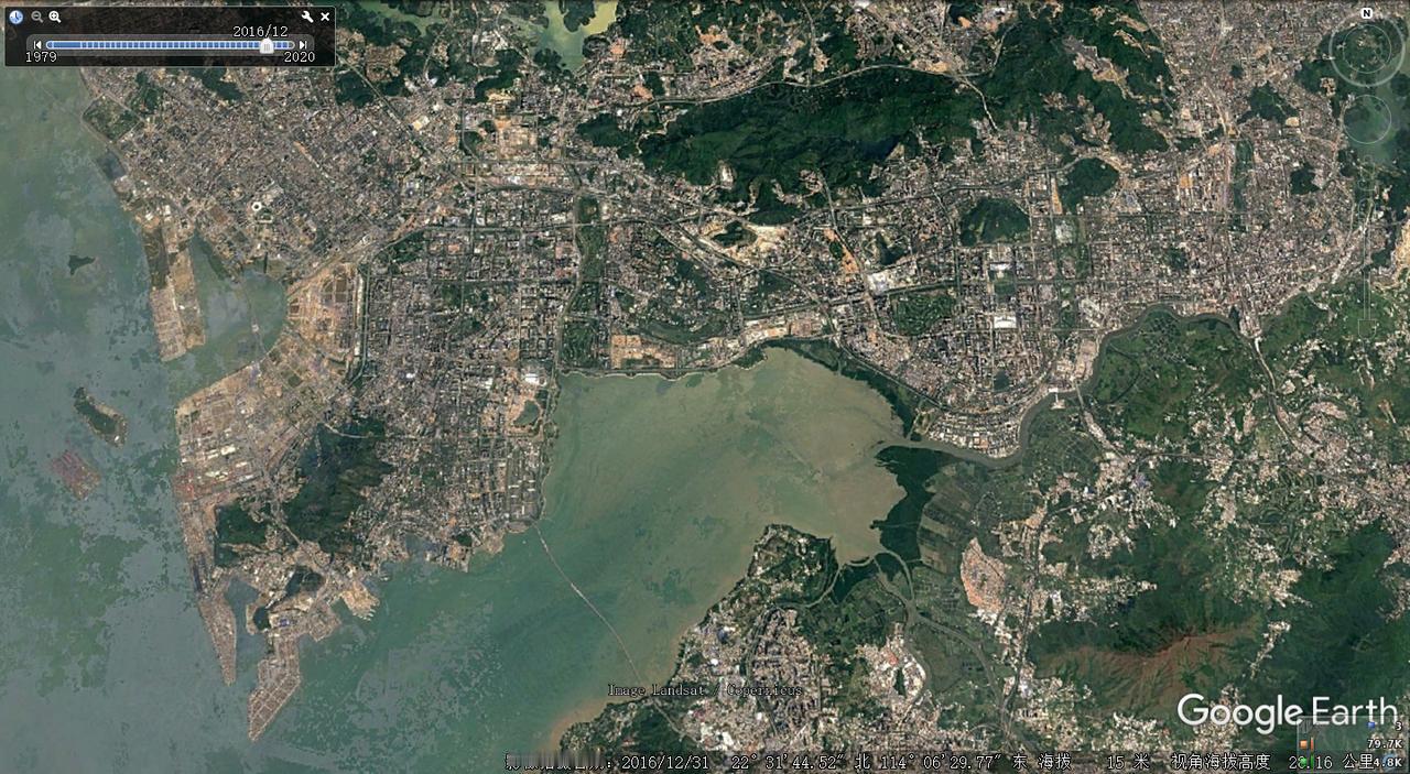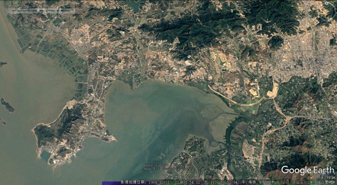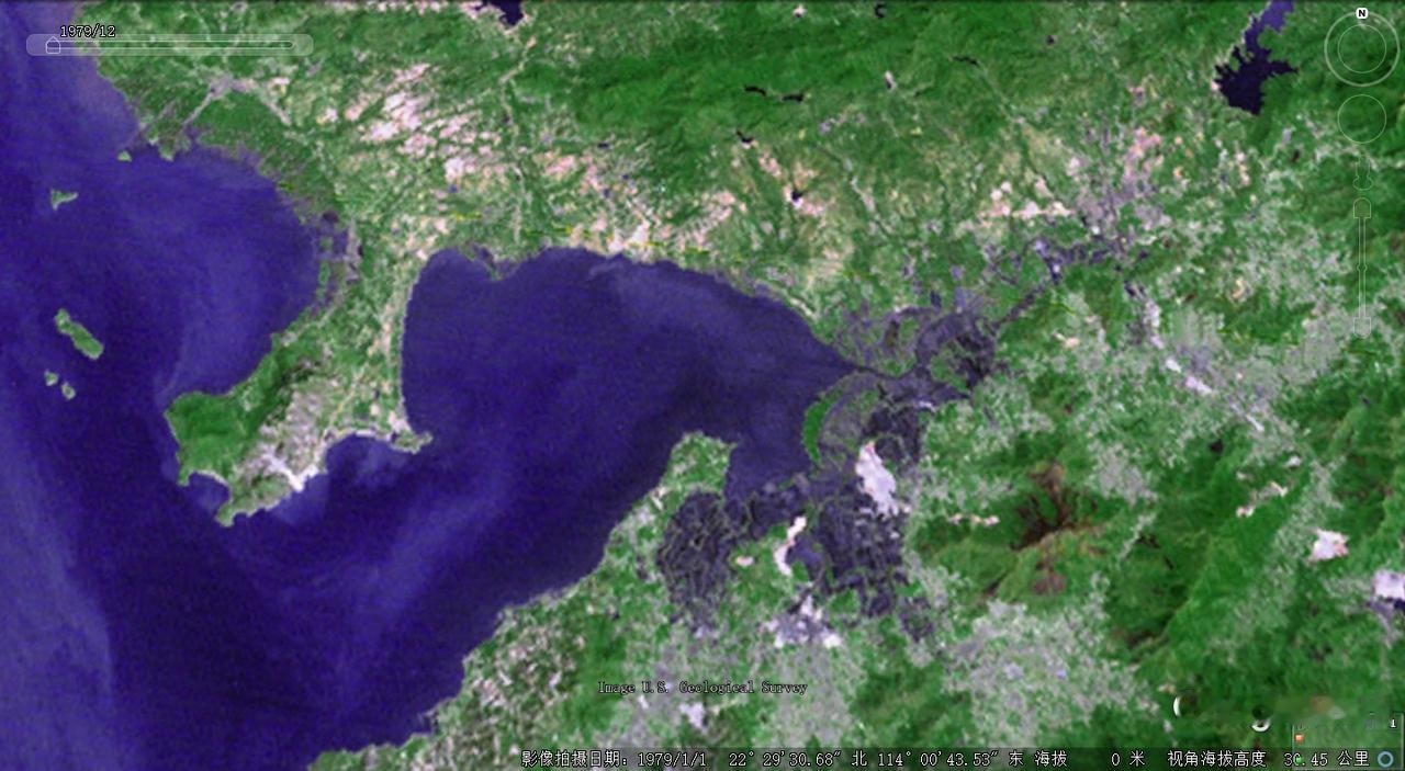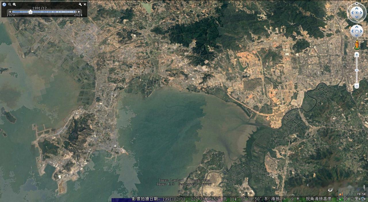 今天发现一个很有纪念意义的图片,在谷歌里看到了从1979到2024的深圳湾发展变