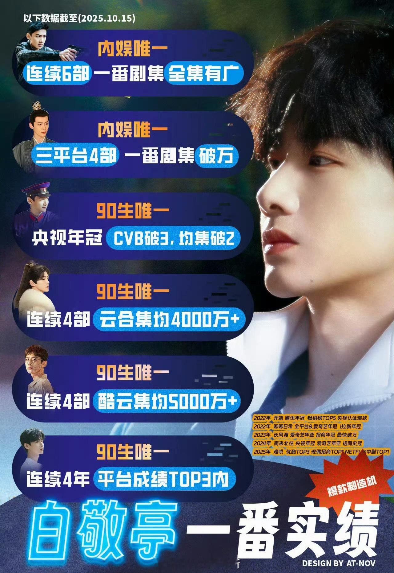 才知道,白敬亭是内娱首位且唯一一番三平台破万男演员,但生粉涛实绩的时候真的很少带他