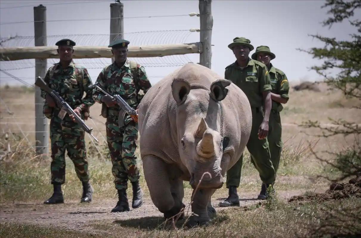 地球上只剩两头,还都是母的,如果人工授精还不成功,人类可能再也看不到这个物种了,