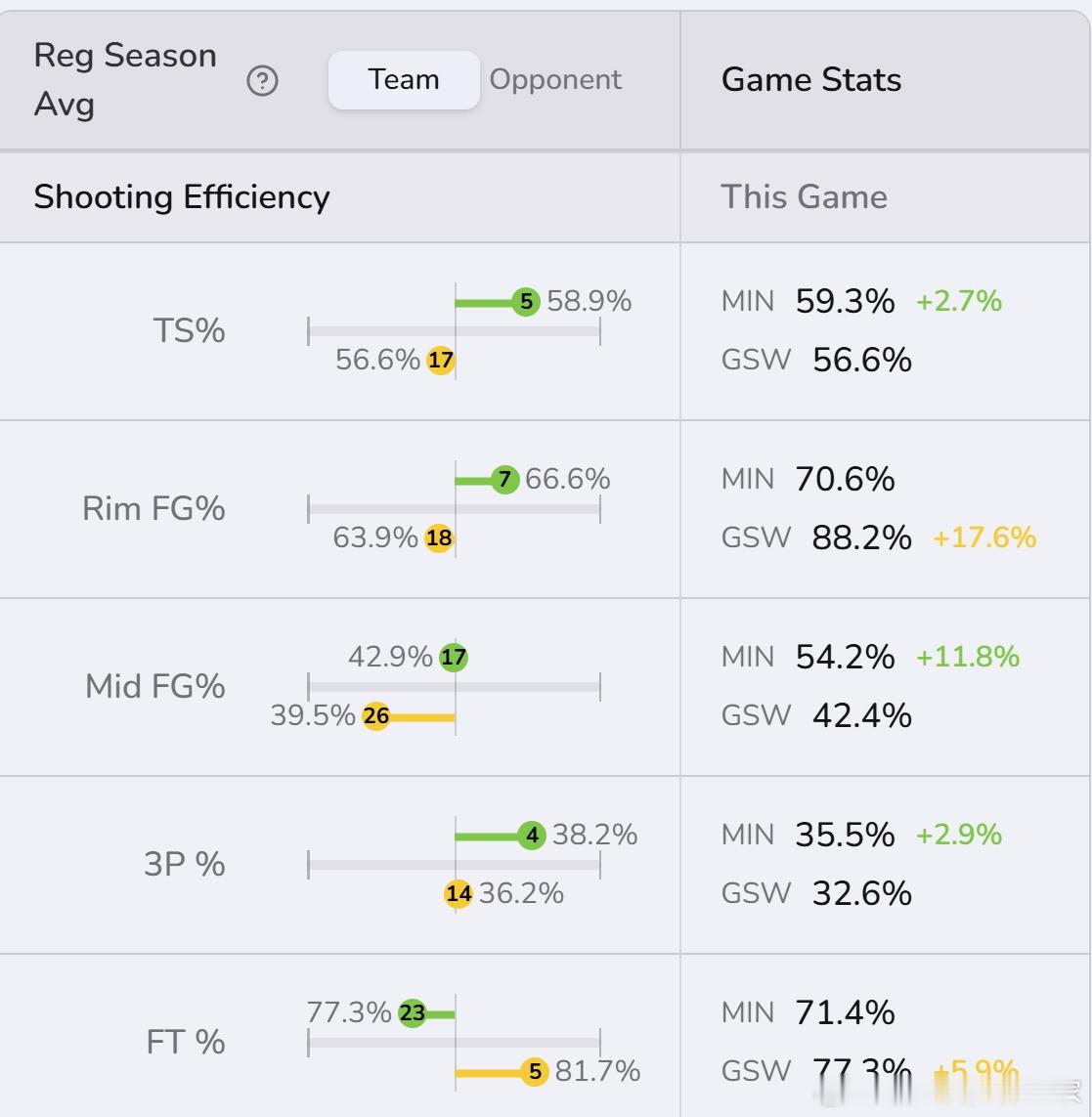 这场比赛之所以让人觉得“太需要追梦了”,是因为,追梦在时,进攻虽然有局限性,但好歹防守能让对面篮下也没那么容易。换句话说,今天追梦不在,又大量打多后卫阵容,导致防守的失血是不可控的。反映在出手分布上的并不只是篮下被打爆,还有为了保护篮下人人收缩再扑出去的疲于奔命,等于防线全面溃败。波斯特防守进步了,但他还远没有到能一个人撑住护筐防线的水平。那进攻如何呢?没了追梦,进攻应该大有帮助才是。确实,勇士117.6的进攻效率按赛季平均水平来说应该是前十的水平,篮下的命中率确实也达到了88.2%的命中率,远超自己赛季平均的七成。但出手分布呢?篮下出手占比甚至还不如赛季平均水平。伟大的戈贝尔。以为是因为追梦在场所以才少了那么多攻筐机会,实际上追梦只是站在了“实在没人能打到篮下追梦你试试吧”的那个位置上。合着,波杰是一种处境,追梦也是一种处境,26勇士就是一个巨大的“狂扔三分、打不到篮下”的处境呗。金州勇士G26vs森林狼