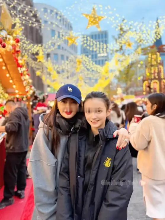 马雅舒与混血儿女合照,二婚嫁对人越活越年轻,与12岁女儿像姐妹,12月12日,48岁马雅舒开心晒出与一双儿女一起过圣诞的照片,一家人悠闲漫步街头,吃喝拍照,小日子过得超级幸福。