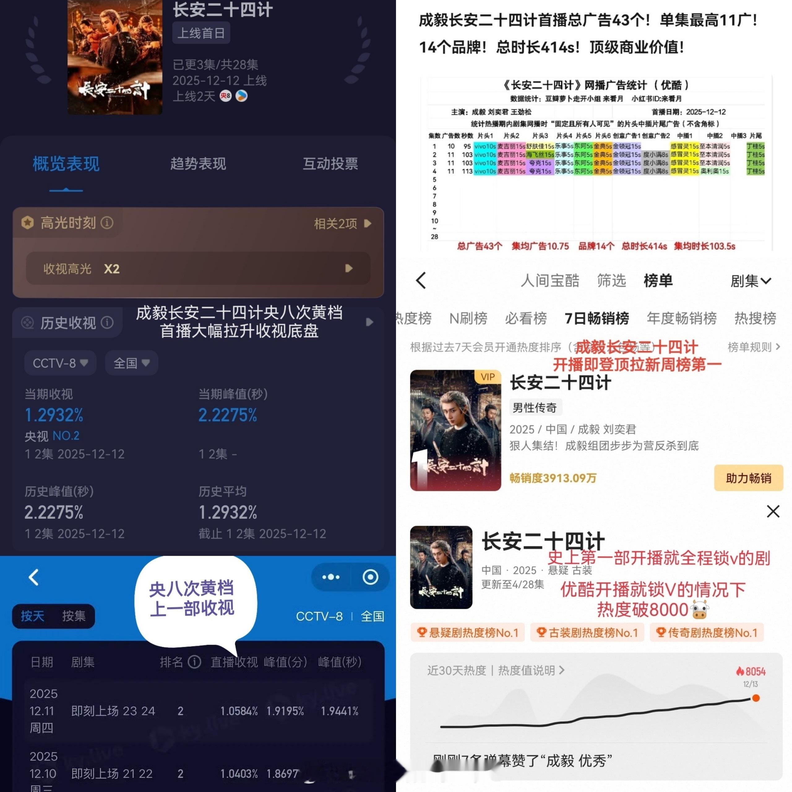 成毅长安二十四计全网热度断层第一🔥优酷全程锁v的情况下首播收视网播招商拉新全面