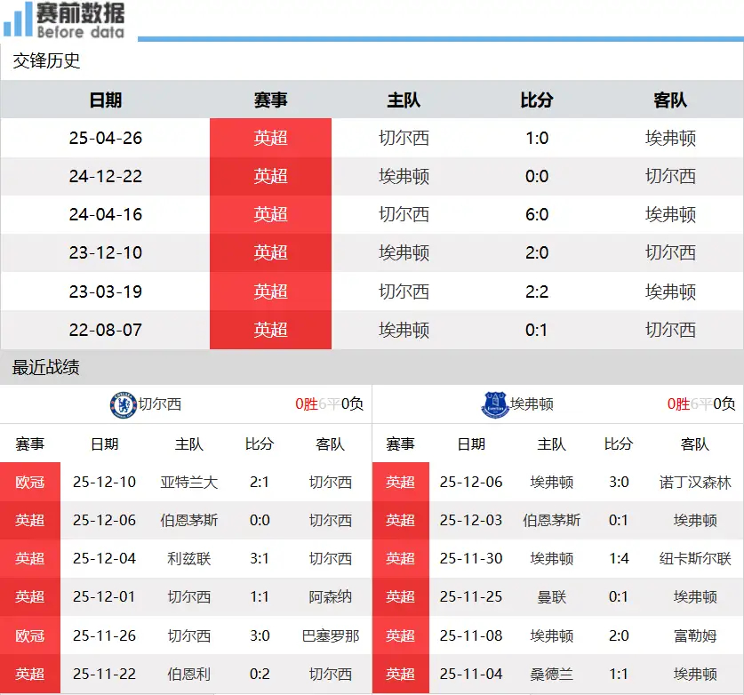 CCTV5直播切尔西vs埃弗顿:凯塞多停赛 蓝军主场难啃太妃糖北京时间12月13日晚上23时,英超第16轮迎来双蓝大战,切尔西主场迎战埃弗顿,央视CCTV5将会直播本场比赛。切尔西vs埃弗顿,比赛看点如下:第一:两队情况!英超15轮战罢,切尔西7胜4平4负积25分排名第五,埃弗顿7胜3平5负积24分排名第七,两队仅差1分。上轮英超,切尔西客场0-0战平伯恩茅斯,遭遇3轮联赛不胜,周中欧冠客场1-2不敌亚特兰大,状态低迷;埃弗顿主场3-0大胜诺丁汉森林,近5轮4胜,状态惊人。第二:凯塞多停赛,蓝军主场难啃太妃糖!凯塞多继续红牌停赛,这会严重影响蓝军的攻防实力。近期切尔西状态低迷,即使主场迎战埃弗顿,蓝军也难啃太妃糖。加上切尔西没有中锋(德拉普又伤了),攻坚战能力不足,蓝军还惧怕身体对抗强的球队,若此役埃弗顿客场选择打反击战,考虑到目前两队的状态,此役还是看好埃弗顿客场不败。双方近6次交手,切尔西3胜2平1负,占据上风。双方伤停情况:切尔西有凯塞多、埃苏戈、德拉普、科尔维尔、拉维亚;埃弗顿有盖耶、布兰斯维特、罗尔、科尔曼。