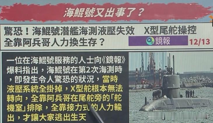 笑死!台湾新造潜艇靠士兵人力摆舵!震惊岛内! 今天岛内媒体震撼爆料,被民进党当局寄予厚望、大肆宣传的“国舰国造”海鲲号潜艇被发现,尾舵失灵无法运行,全靠士兵人力拼命摇舵,摇到没力气就换下一个士兵接着摇。这则消息一出,岛内震惊,网友骂翻民进党。 台蛙500亿造的潜艇,下水试航七八次了,就是不敢下潜测试,一直在水面上浮潜。同样经费,日本能造两艘半,大陆得造四五艘了。笑死了。