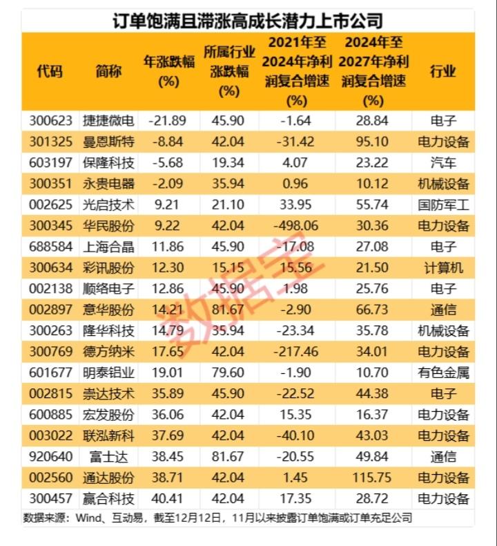 跟着订单走,炒股不用愁?这句话似乎有点道理。 在大A玩股票,想赚钱确实有点难。连国际顶级投资机构贝莱德都灰头土脸,铩羽而归。咋办? 但如果找一家未来几年锁定了订单,毛利率还不错,现金流充沛,估值还不高的滞涨股跟踪配置,似乎是一个不错的策略。 说干就干,周末复盘就看滞涨股里有没有埋着黄金的明年的希望之星?