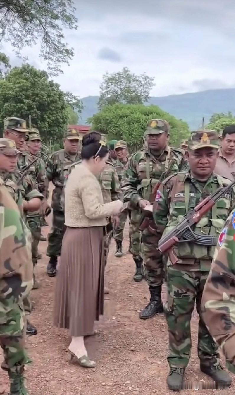 这应该是战前动员吧!几名穿着便装的女子和男子在给士兵们发钞票,这些士兵们拿着武器立正站好。 可以看出,这是他们的某个上级来慰问。但是有网友质疑说,这是不是他们的园区老板给他们发战斗前赏金,因为战斗很快就要打响了,为了保护好园区,老板只能花重金了。 大家觉得是不是这样的。