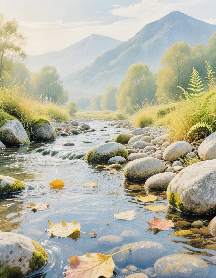 岁月的回声 山间听溪,忽觉岁月如这流水——看似匆匆,却总在石间刻下深浅的痕。 年少时追着浪花跑,以为终点才是答案;后来蹲在滩头,才看见每颗卵石都被磨得温润,每道波纹都裹着落花的叹息。原来时光从不是单行道,它把经历熬成汤,将遗憾酿作蜜,让每一次跌倒都成了扎根的契机。 我们都是赶路的人,不必急着丈量远方。且看云卷云舒里藏着晴雨,听晚钟暮鼓中裹着晨露。那些被风吹散的承诺、被雨打湿的梦想,终会在某个清晨,化作枝头的新芽,轻轻叩响心门。 岁月从不辜负认真活过的人。它让我们在皱纹里藏故事,在白发间蓄月光,最终明白:所谓圆满,不过是把每一步都走得踏实,让生命像溪涧般,虽曲犹欢,自有回响。