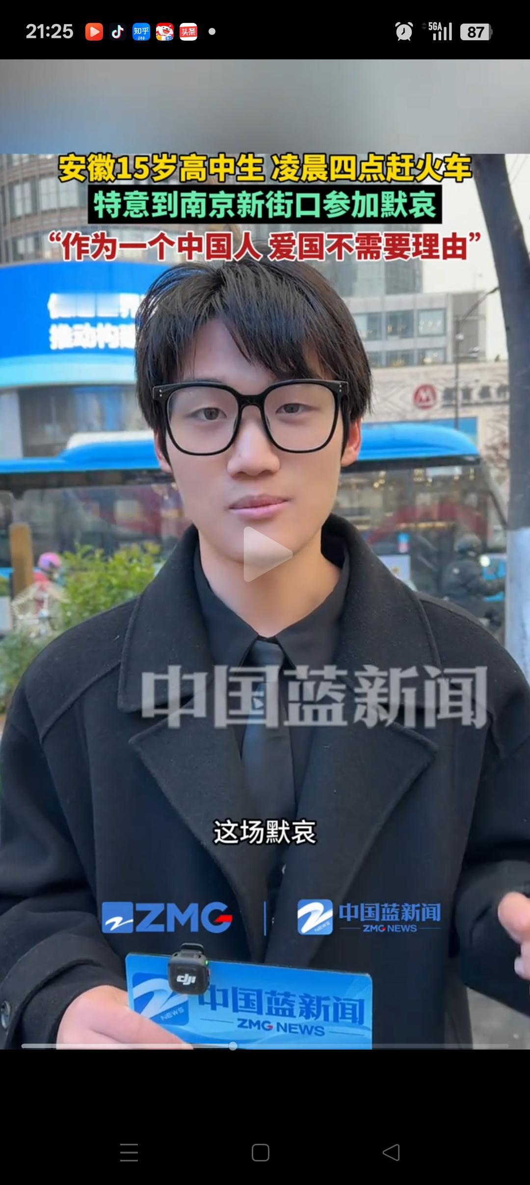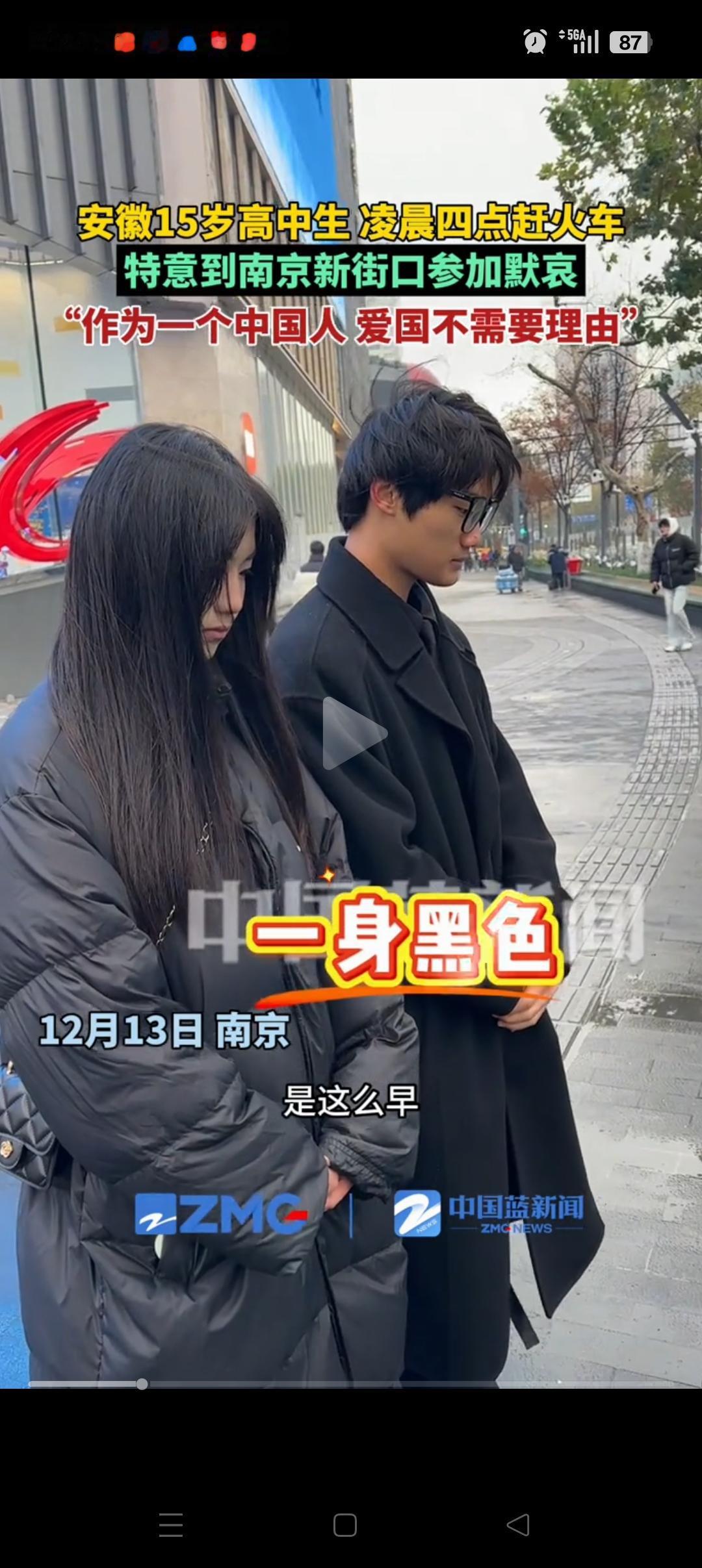 “爱国不需要理由[玫瑰]”,安徽,一15岁高中男生连夜坐3个小时火车赶到南京,特意参加默哀。他的一身打扮更是亮了,只见他全身黑色,非常的普通,庄重,显然是有所准备。 当然,他的一番话更是让无数网友感慨!他说:作为一个中国人,我觉得爱国不需要理由。 铭记历史,少年强则国强! 只要我们的青少年都能像这位男生一样,好好学习,同时不忘了自己身上的那份担当,那我们的国家就有希望了! 有这样的年轻人真好,向你致敬,身边的那位女孩也很不错[赞][赞]