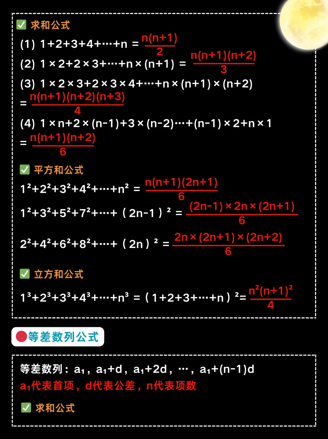 ✔️ 裂差型:1/n (n+1) = 1/n - 1/(n+1)(例:1/1×2 +1/2×3=1-1/3=2/3)
