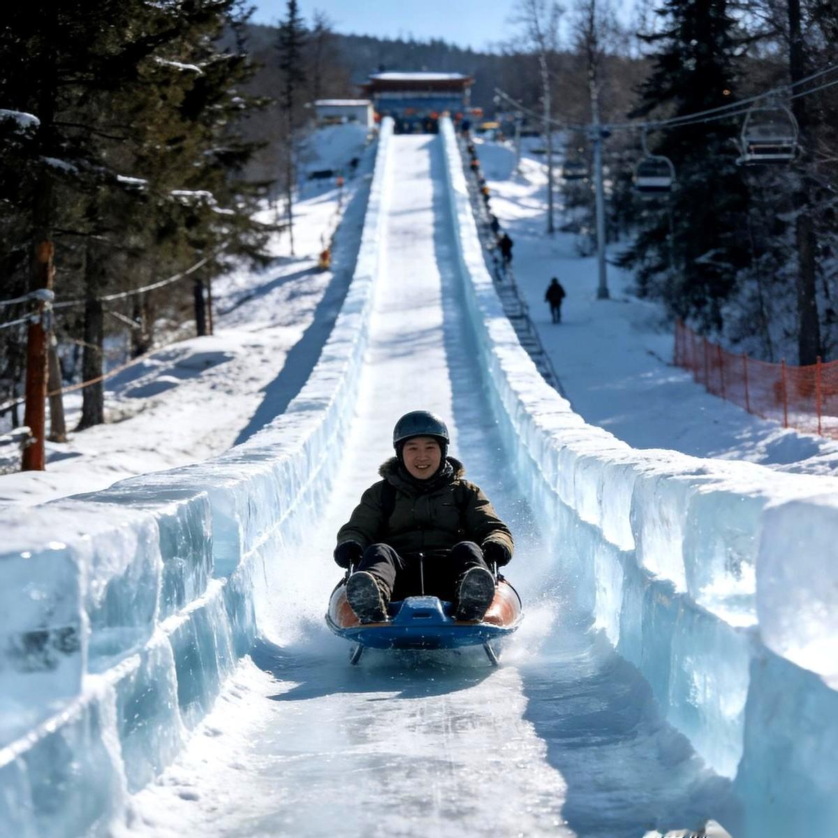我跟你讲,400米。 你从这头儿坐上去,嗷一嗓子,估计滑到一半,气儿都喘不上来了。 什么概念?就是标准操场跑道一整圈,全给你换成了冰溜子,让你一屁股滑到底。 很多人一辈子都在追求一种失重感,一种短暂的、灵魂出窍的自由。 现在告诉你,家门口就有了。 就把那个一本正经的、累得跟狗一样的自己,暂时扔在滑梯顶上。 然后你就闭上眼,感受风在耳边刮,心提到嗓子眼,所有的烦心事儿都被甩在屁股后面。 真的,成年人的解压,有时候就是这么简单粗暴。 老琢磨着去远方看雪,去远方找刺激,结果家门口藏着这么个猛料。 滑完了,心还在扑通跳,正好去摸摸傻乎乎的羊驼,看看眼神里都是故事的驯鹿,在冰迷宫里转悠一会儿,找找北。 那股子从骨子里透出来的快乐劲儿,比什么都强。 别想了,有时候快乐根本不需要长途跋涉。 就在身边,一脚油门的事儿。