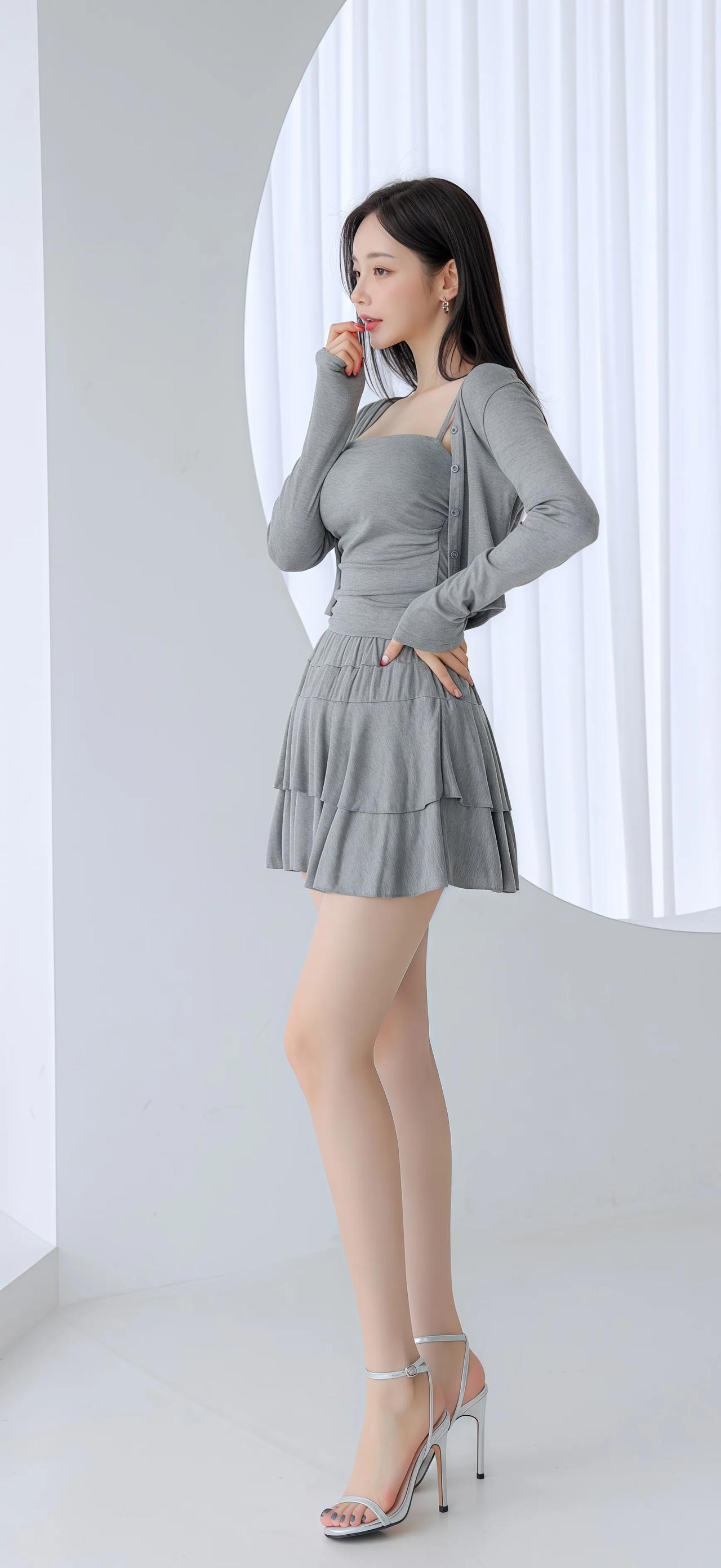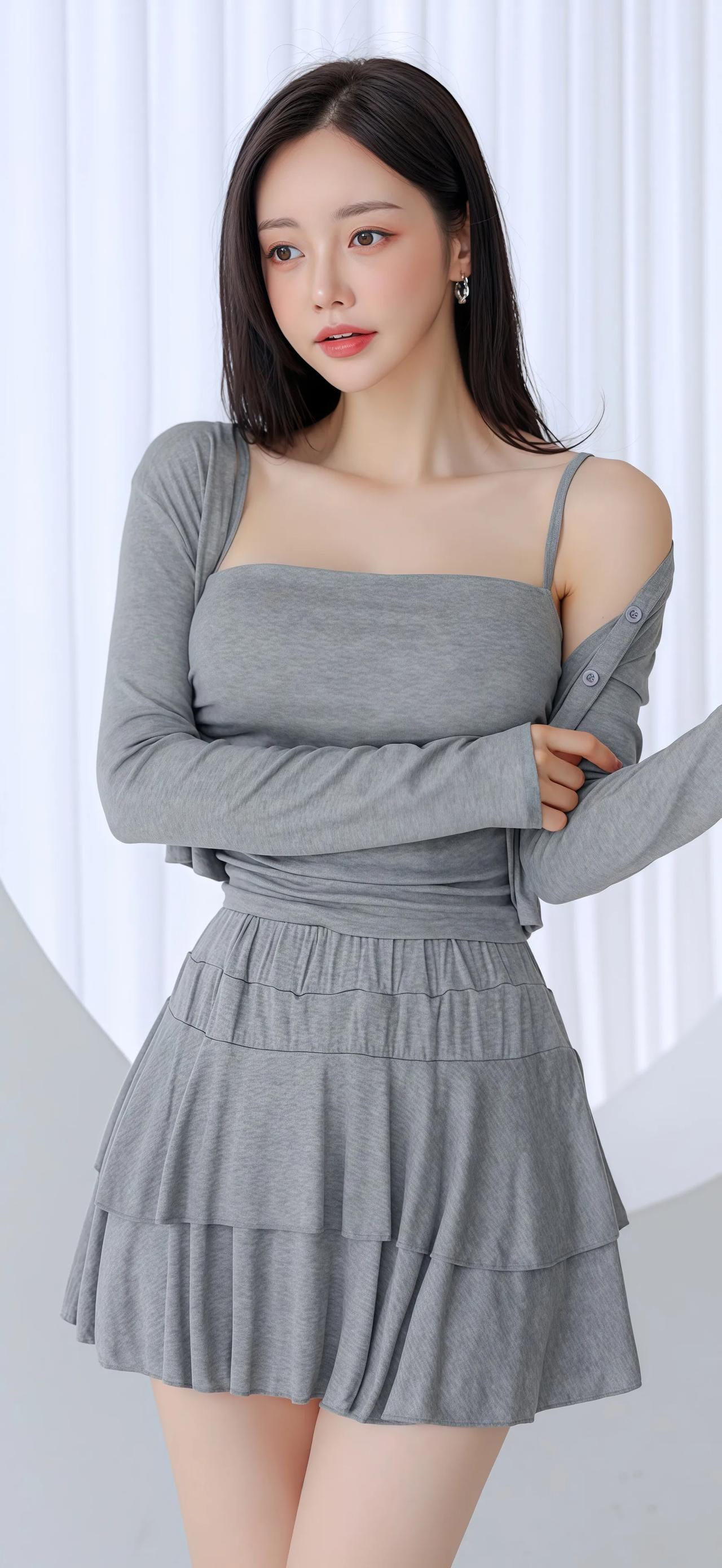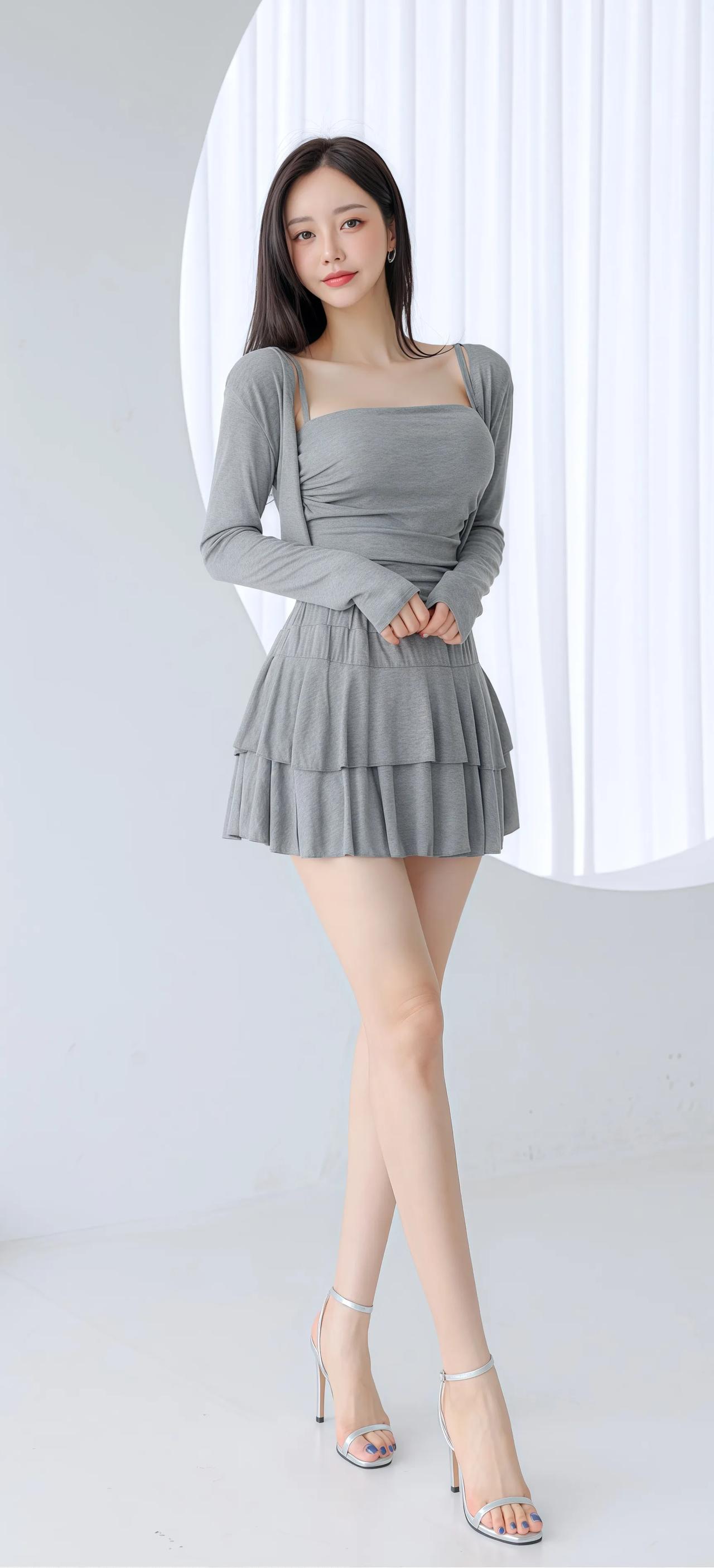 气质优雅,灰色连衣裙搭配长袖,尽显温柔魅力!