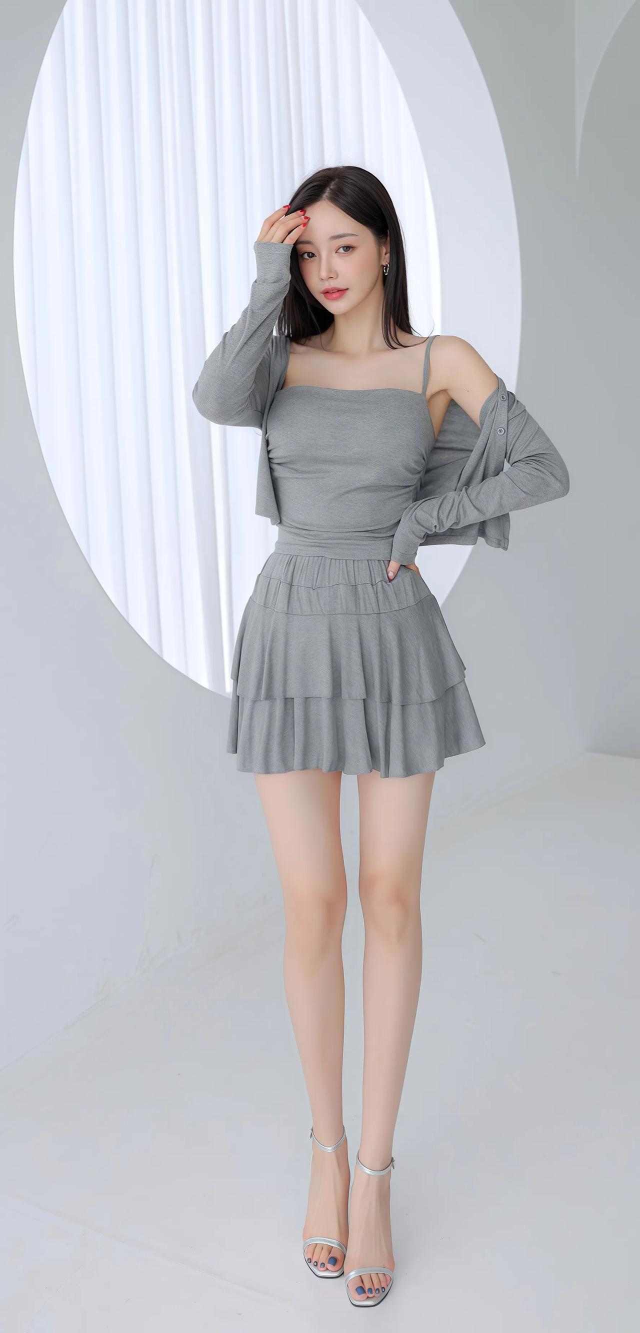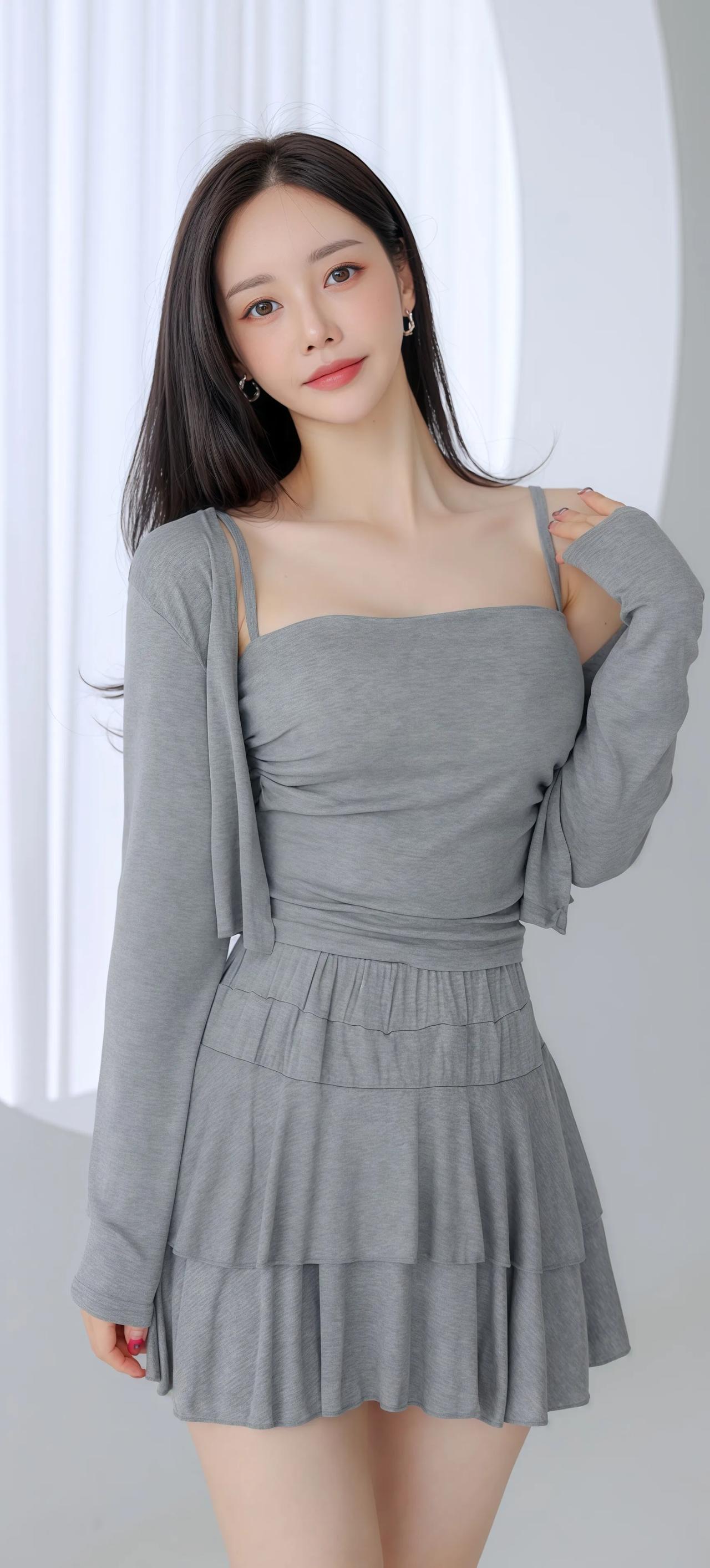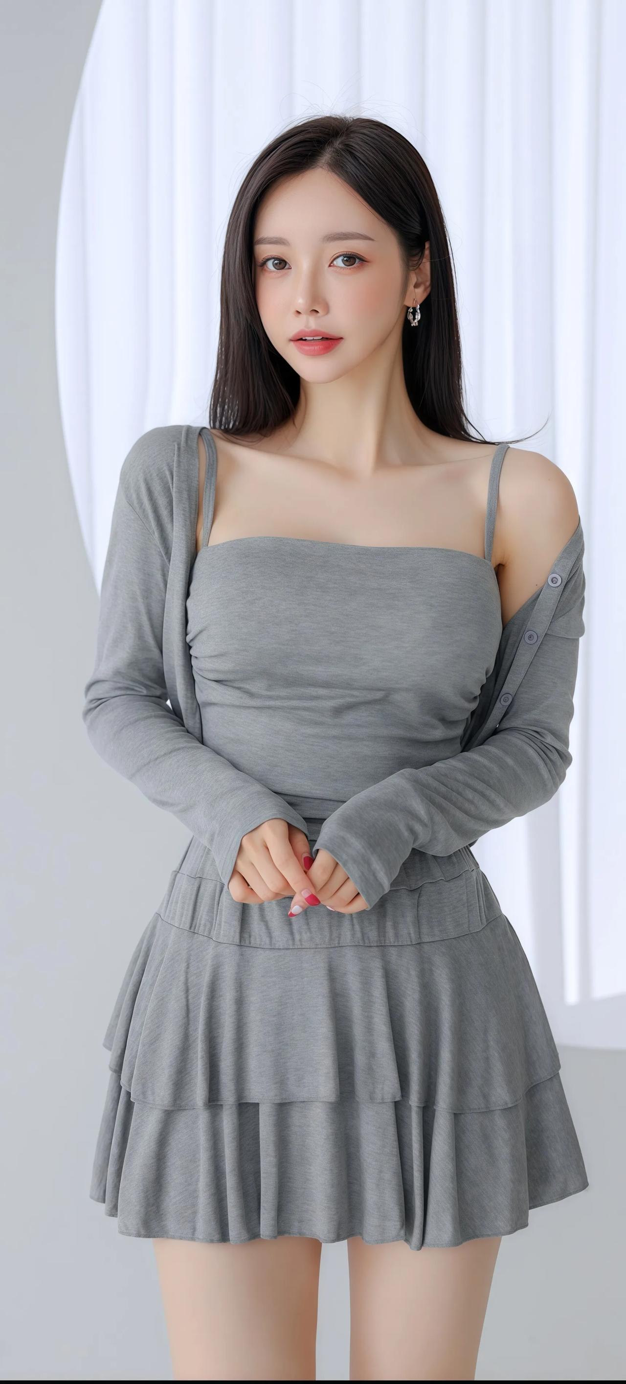 气质优雅,灰色连衣裙搭配长袖,尽显温柔魅力!