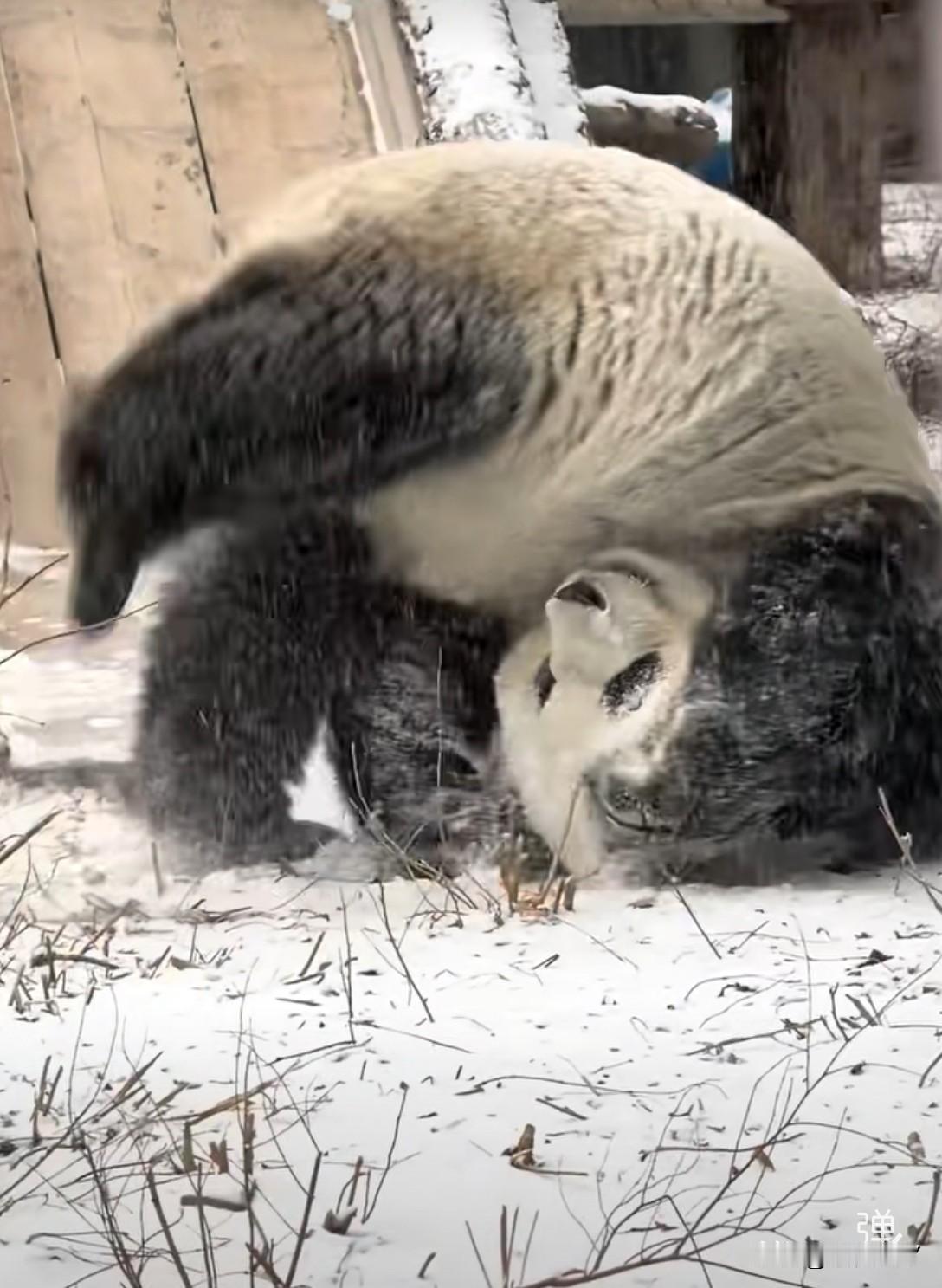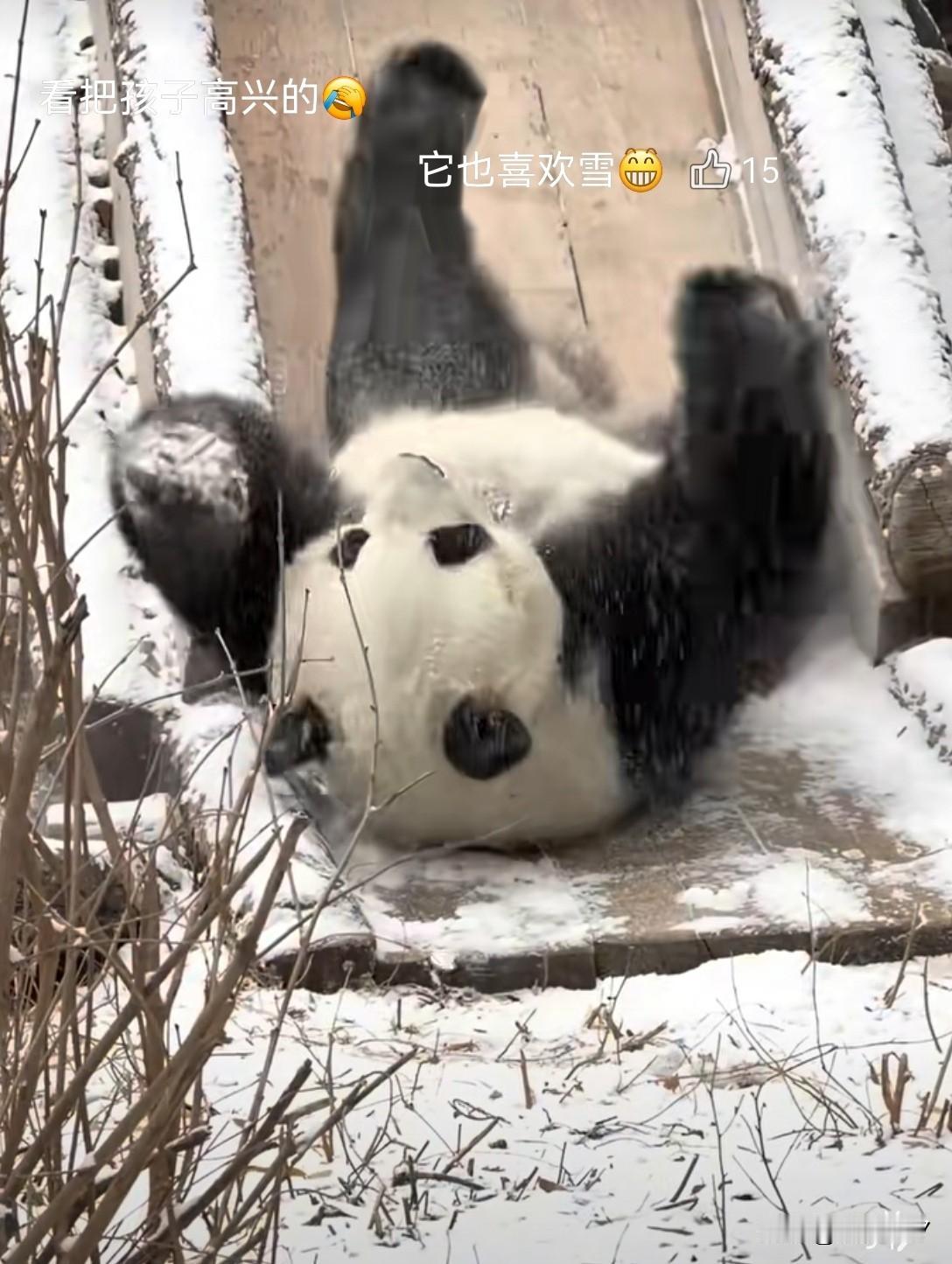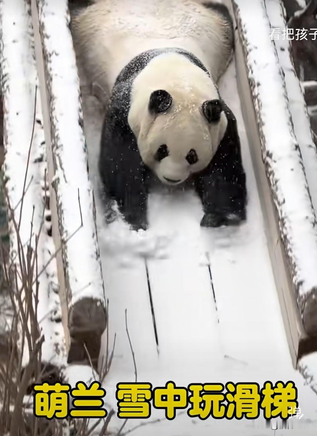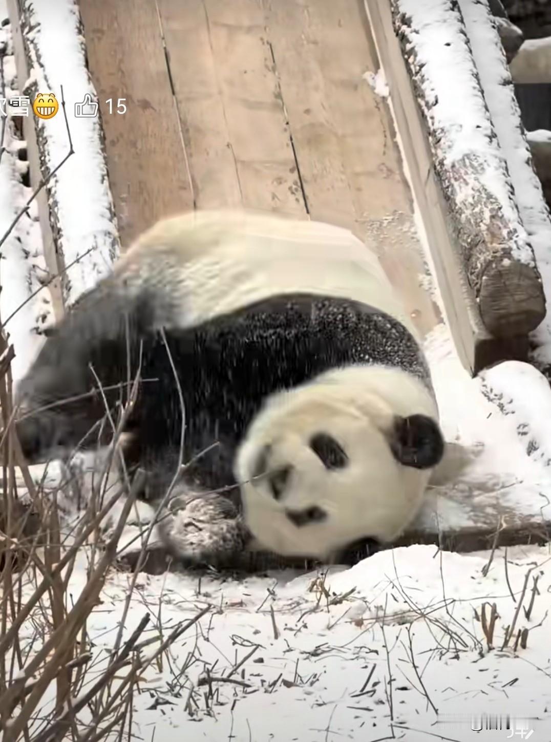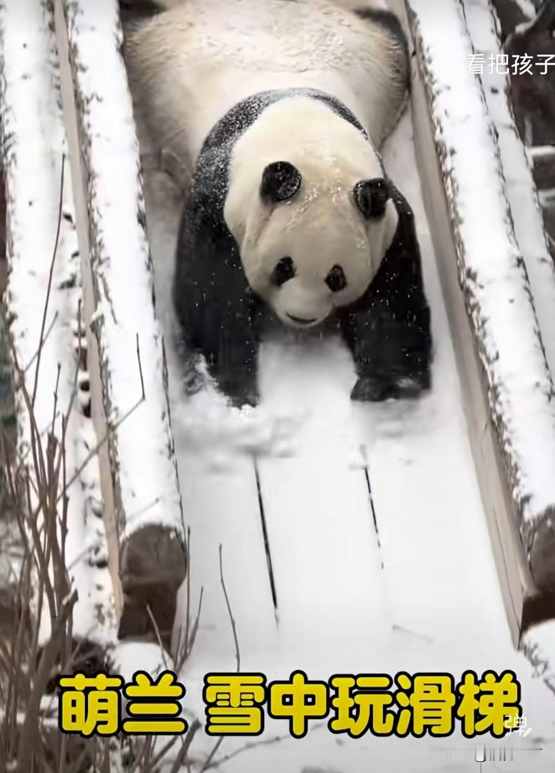 大熊猫玩滑梯,还翻个根头,太可爱了。