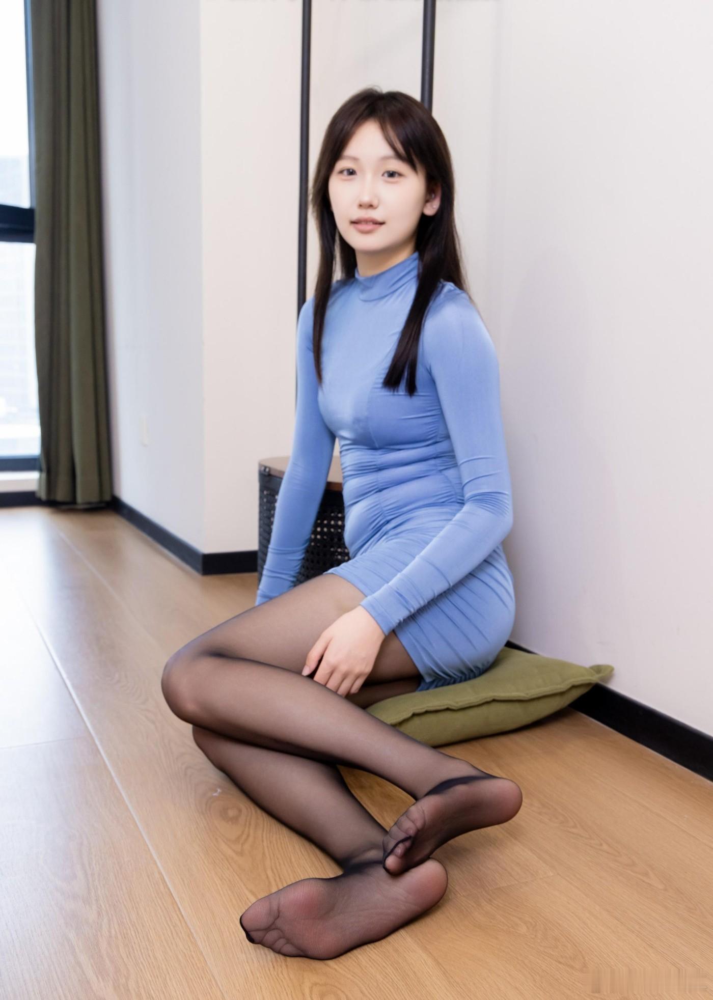 顶级网红车模依依酱:亮蓝挂脖连衣长裙生图车模小姐姐