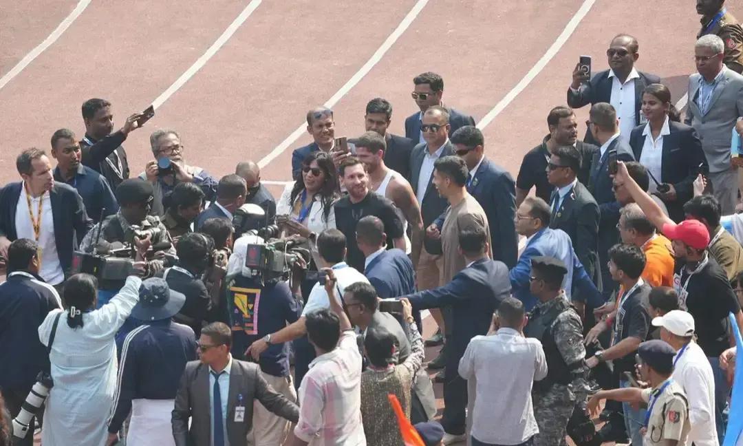 梅西印度行提前结束了。 加尔各答盐湖体育场八万五千人等着他。本来安排绕场和球迷见面,梅西到了也按计划来。 可他刚进场,一群政府官员就围上去合影。球迷根本看不到梅西,当场嘘声一片。 后来更乱,水瓶杂物往场上飞。安保没办法,只能终止活动。梅西被护着赶紧走。 球迷气坏了,几千人冲进球场,还砸了设施。现场彻底失控。 官员们这操作真离谱,只顾自己合影,把球迷的期待全毁了。